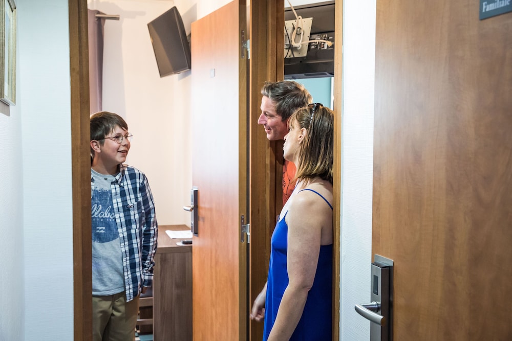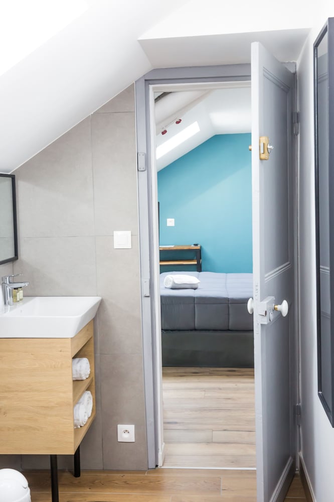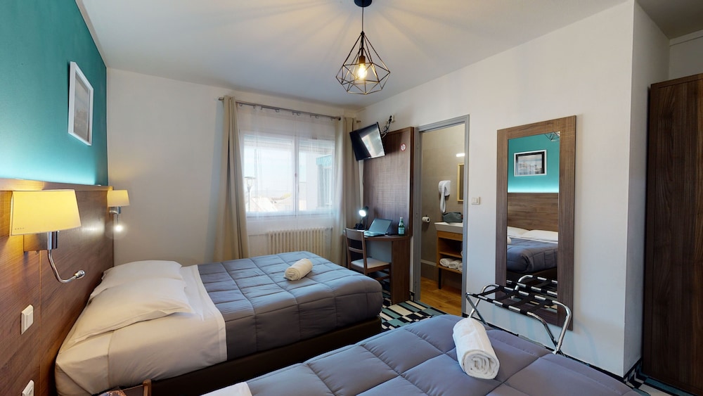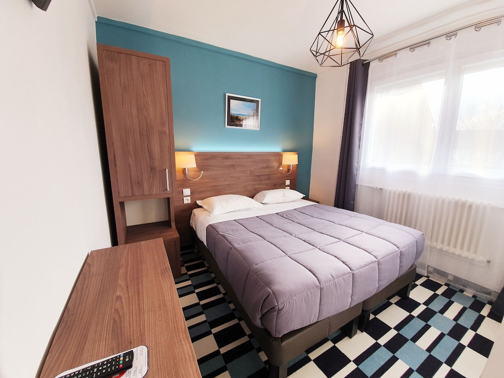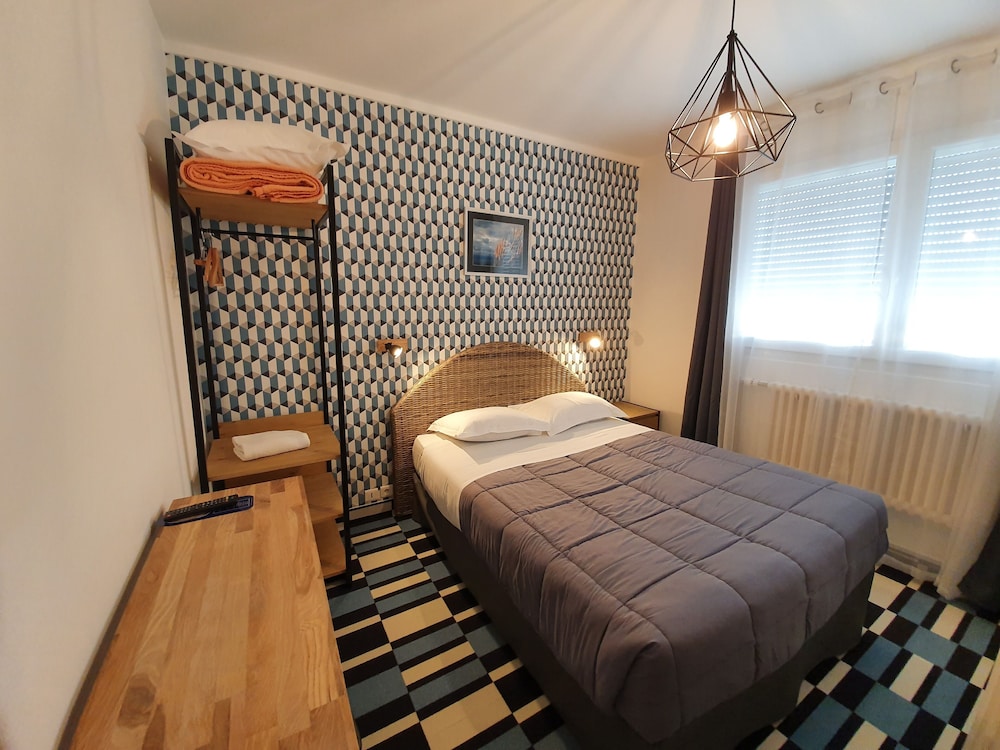 La chambre est confortable et agréable. Le personnel est bien agréable. Les WC et salle de bain sont exigus et il n'y a pas d'ascenseur : 3 étages avec porte palière et 2 valises, c'est délicat mais pas impossible. Il y a un parking public gratuit juste à côté et la ville est accueillante.