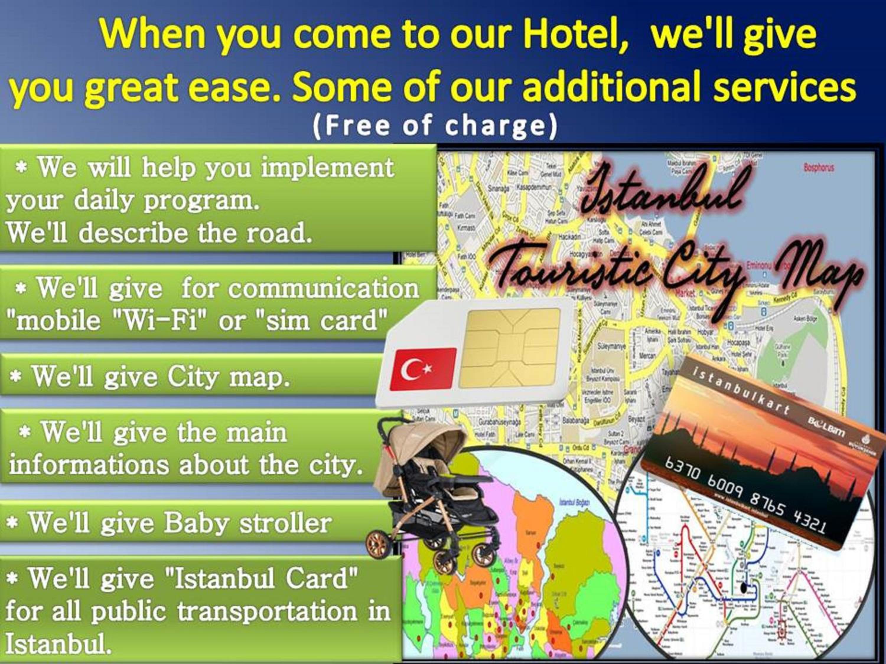 Foarte bine poziționat având punct de referință Piața Taksim, considerată ca fiind centrul orașului. Legături facile a mijloacelor de transport public către mai toate direcțiile, (3 min. de mers pe jos până la gurile de metrou). Personal foarte amabil, care te ajută, atât cu cartela SIM, cât și cu cartela de transport pentru întreaga perioadă. Mic dejun consistent și gustos. Camera dotată cu aragaz, frigider, aer condiționat, cuptor cu microunde, seif, dulap cu spațiu generos pt haine și fier de călcat. Prosoapele se schimbă zilnic, pat dublu foarte confortabil și produse de igienă.