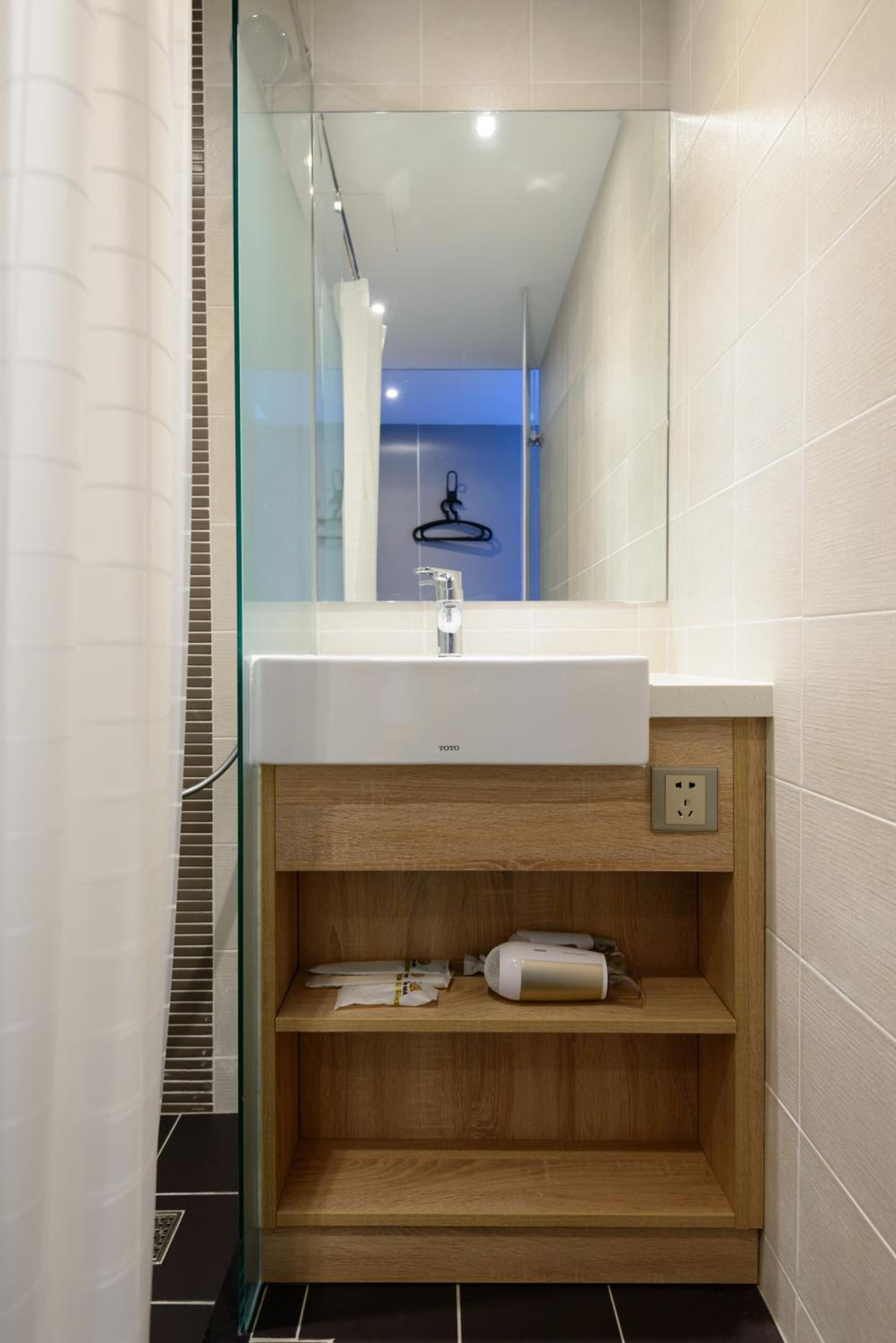 缺點:離捷運有點遠,房間算不上很整潔,進去感覺黃黃的有點老舊感,插頭有點少,廁所跟訂房照片不同,很少層架,而且洗手盤位置有點窄