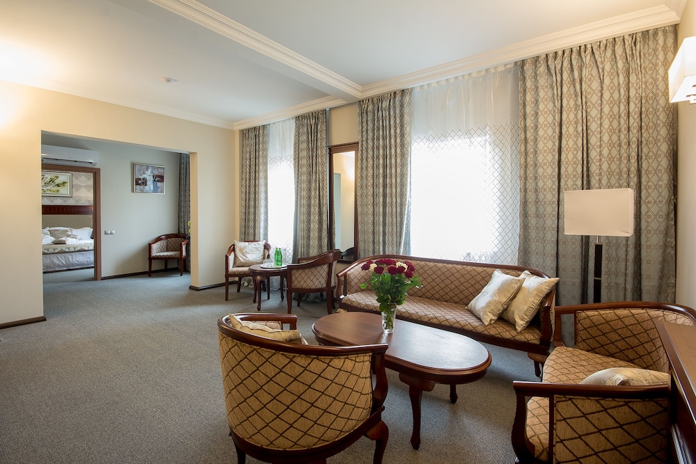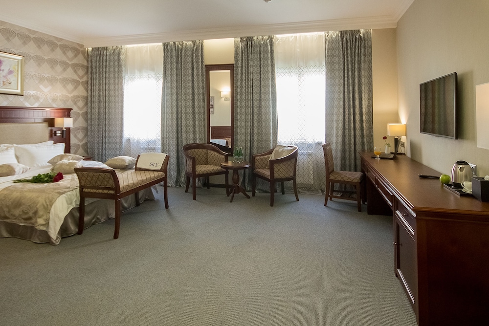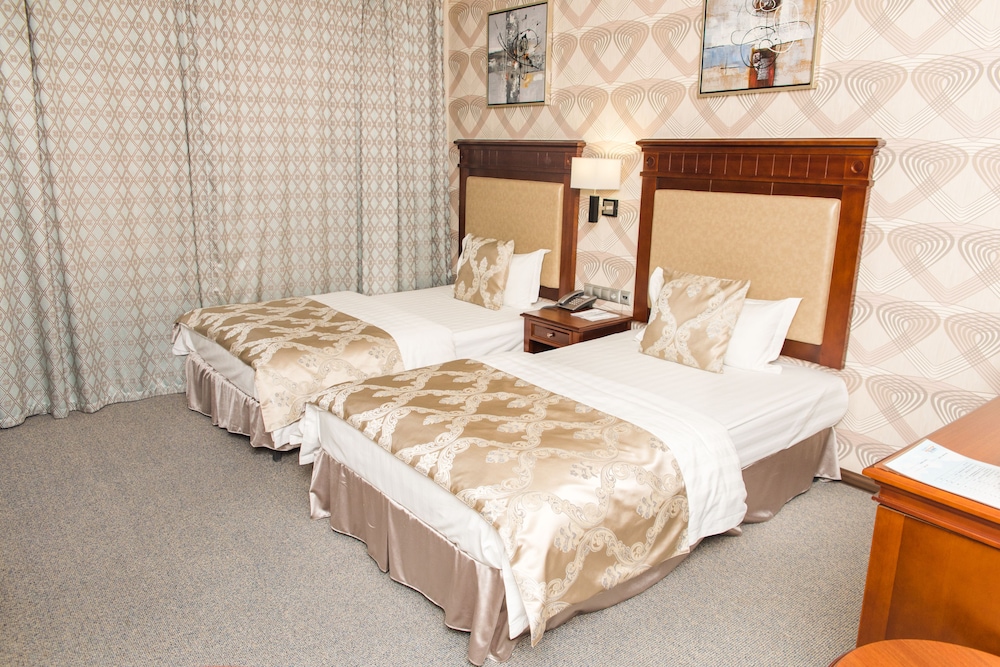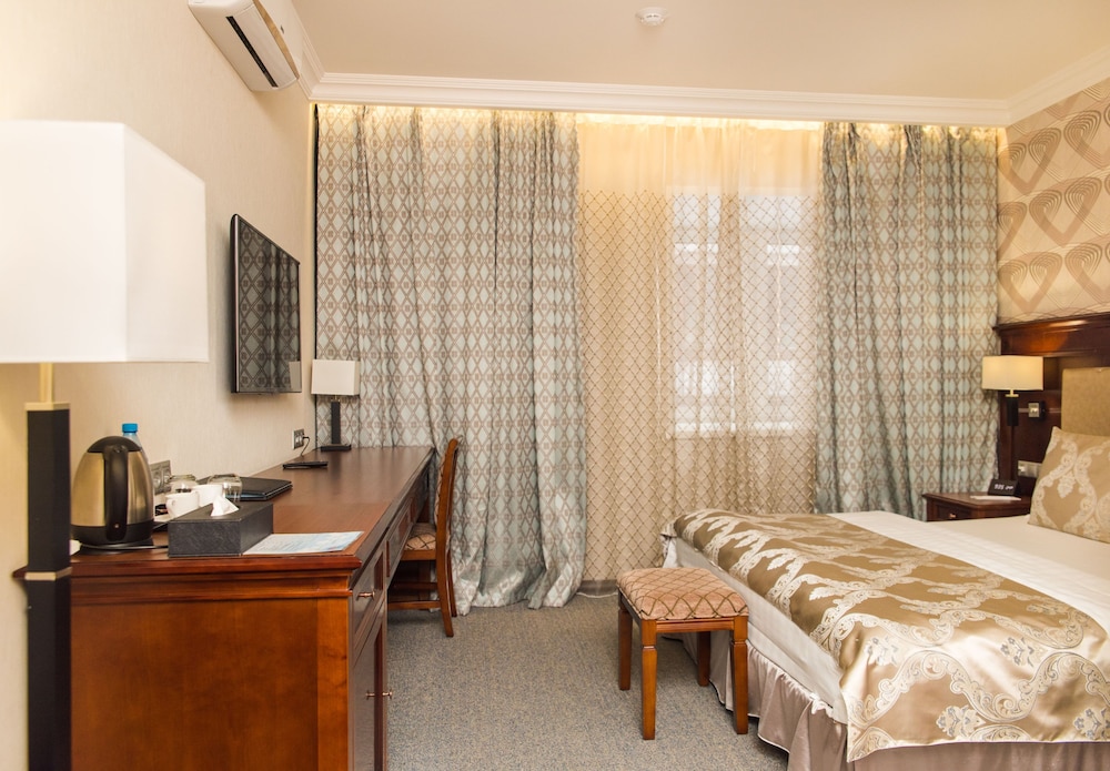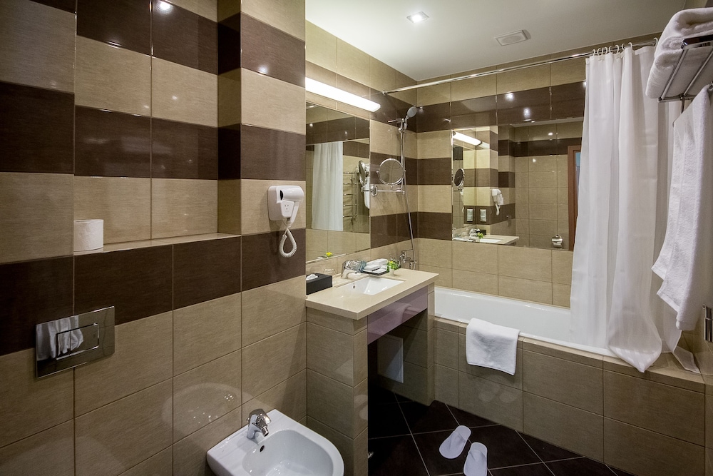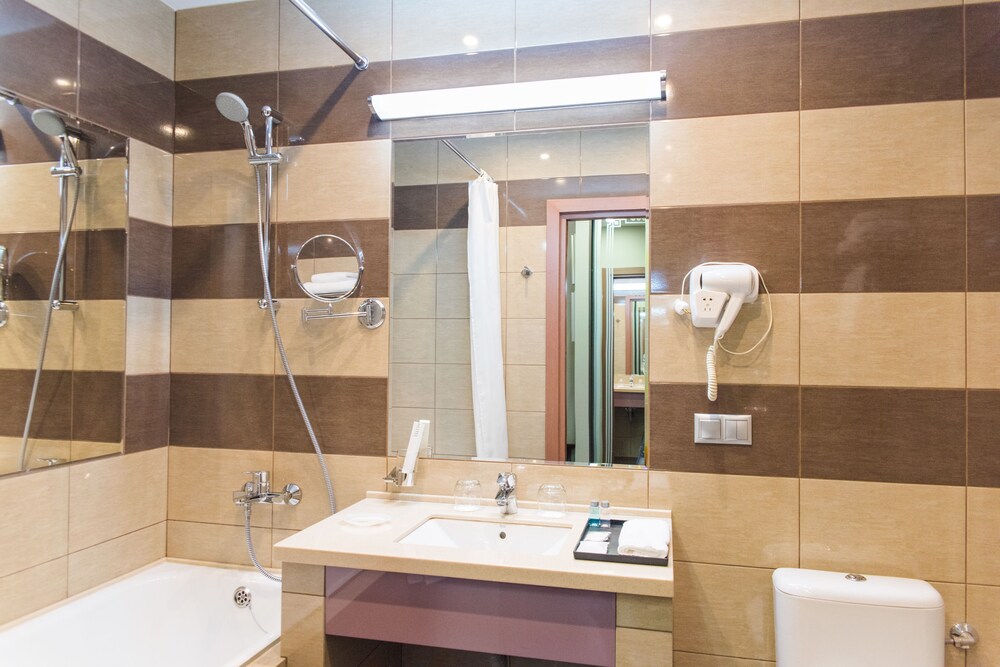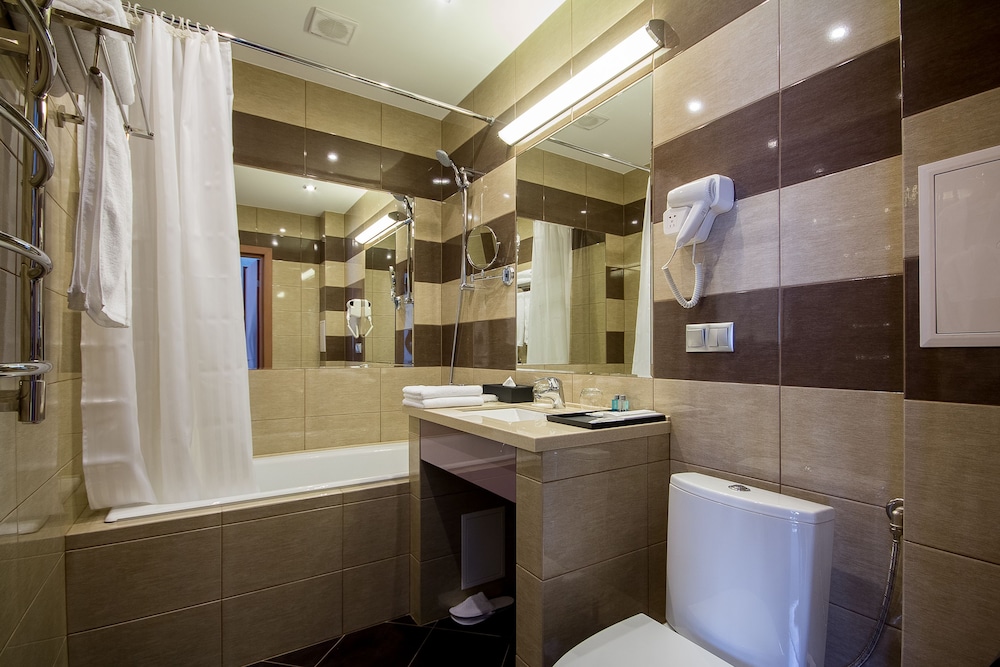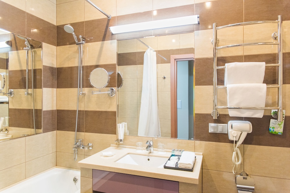 Хороший новый отель в центре Красноярска. В просторных номерах хорошая мебель, и обстановка, оборудование в ванной тоже отличное. В номерах имеется чайник, каждый день предоставляется бутилированная вода, чай, кофе. В ванной гостям предоставляют мыло, шампуни, зубные щетки и бритвенные наборы. Если забыли дома свое, это не проблема.
