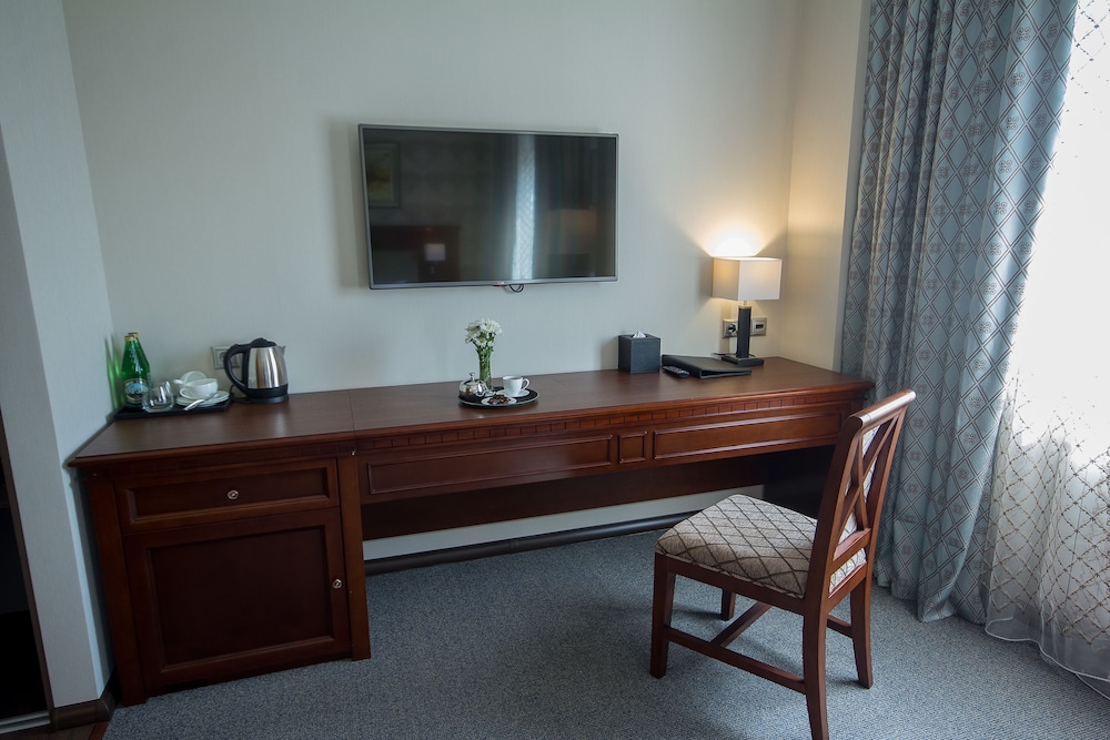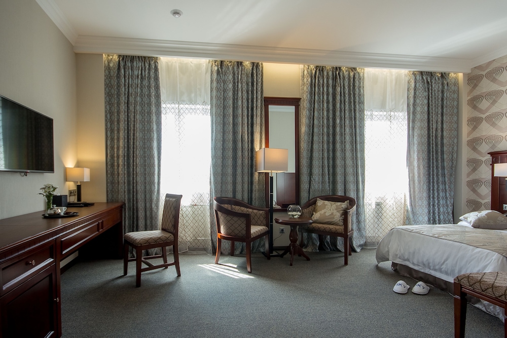 Номер хороший. Были Новогодние праздники и к нашему визиту номер не успели подготовить. Чайные пары не помыли. Горничная выдала халаты. полотенец много и чистые. Сейф, телевизор, было немного прохладно. одна батарея в номере. в основном мы только ночевали. днем были на Взлётке.