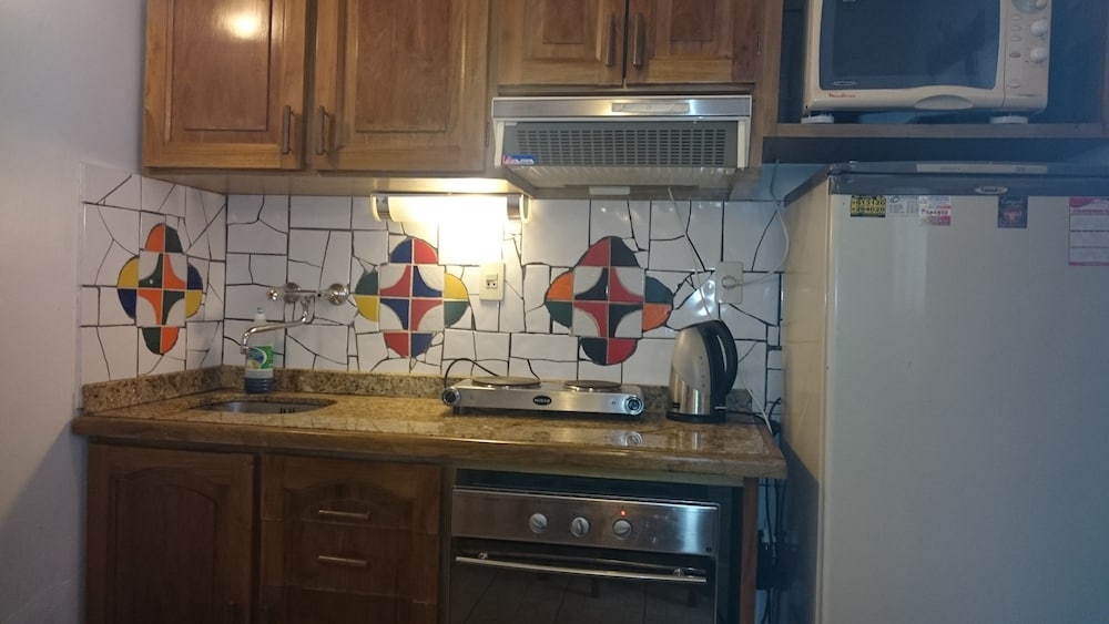 This is a chance to get away from overpriced hotels or questionable motels. You have an apartment with plenty of room, a kitchenette, and separate sleeping and living room areas. There were two air conditioners and two large ceiling fans.