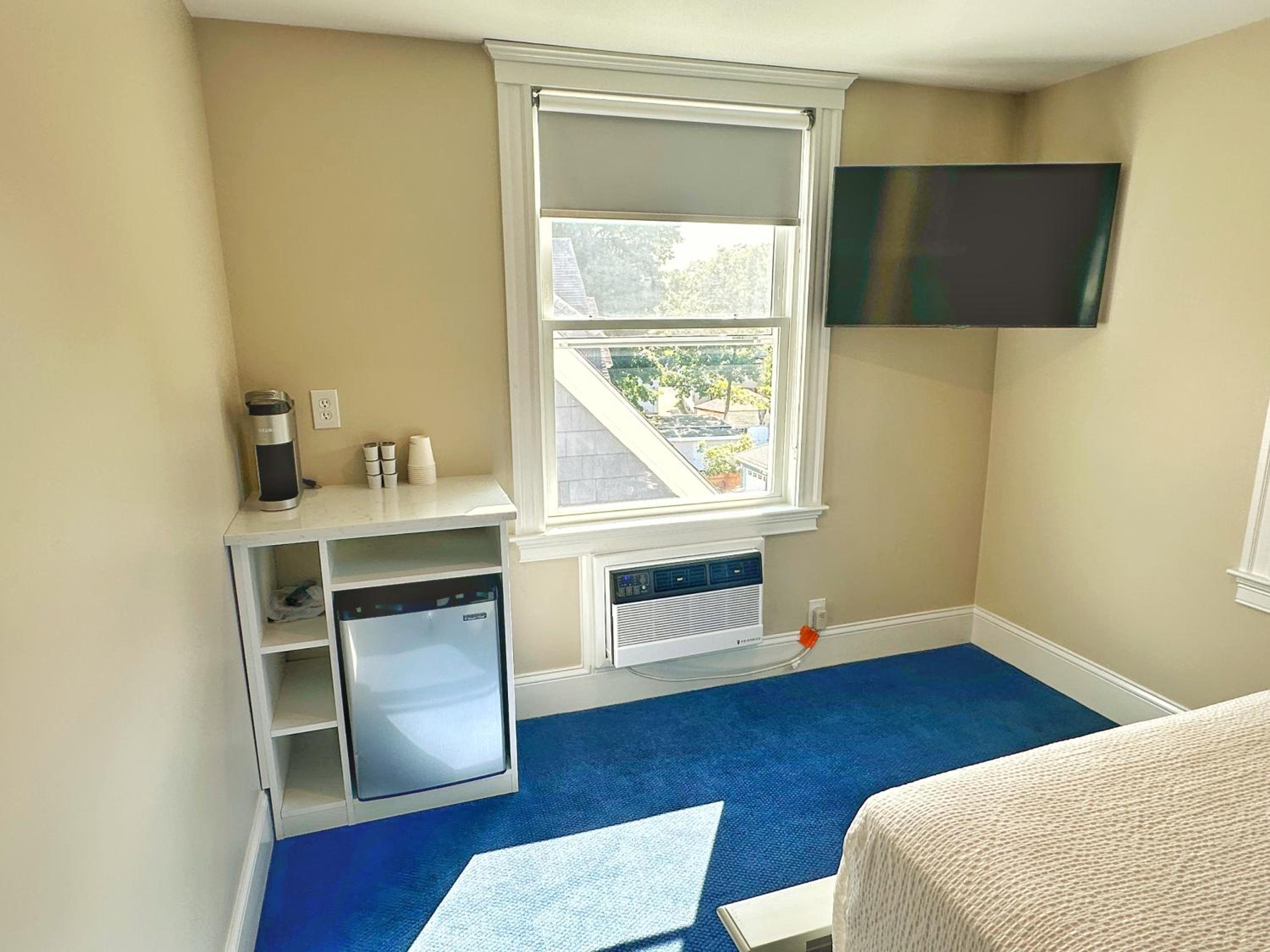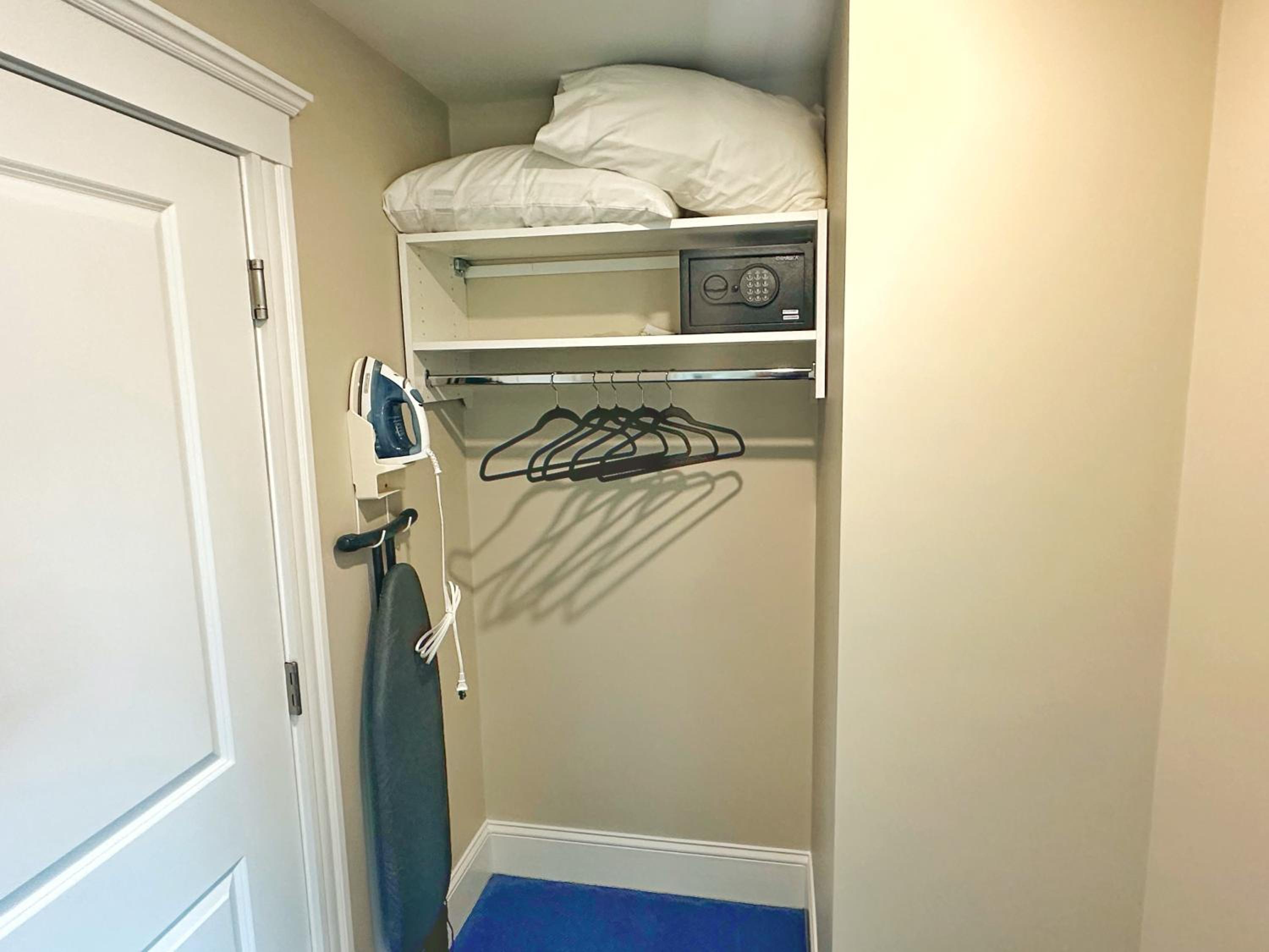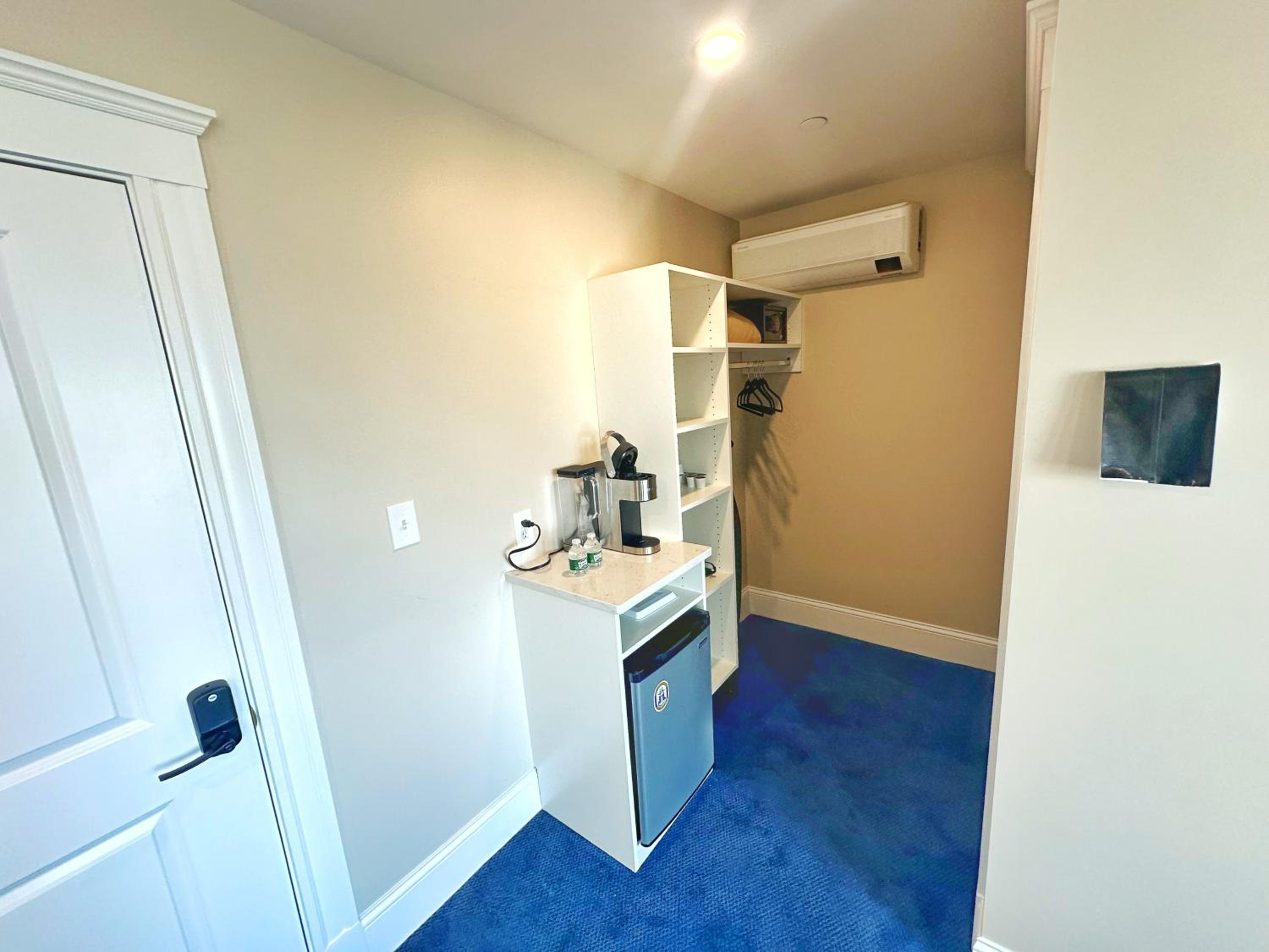 No luggage rack in room and no counter space to place luggage. Had to put suitcase at bottom of bed.