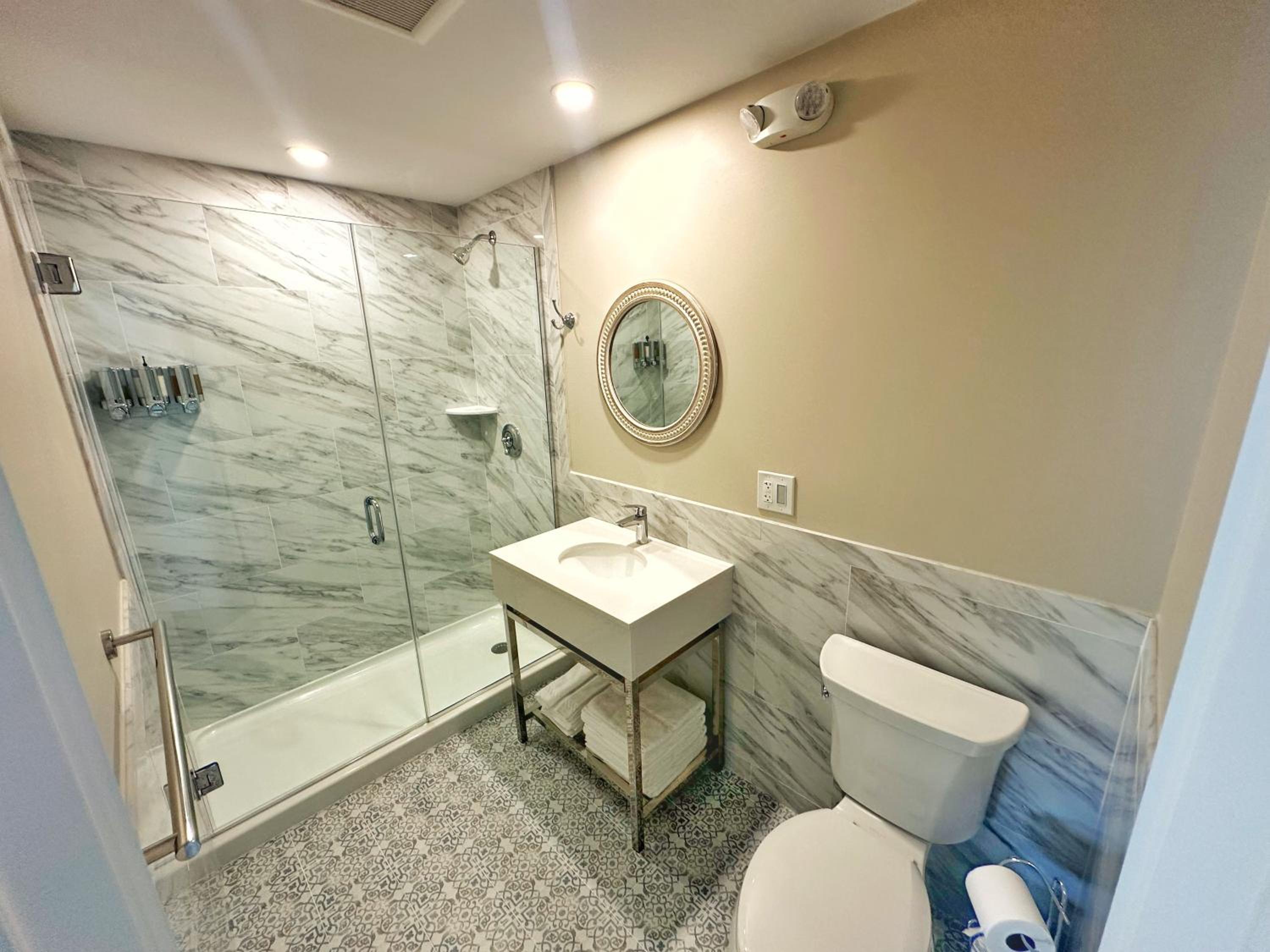 Rm was spacious and staff was friendly and accommodating of our late arrival. Beautiful neighbourhood to walk around in and close to the bay.