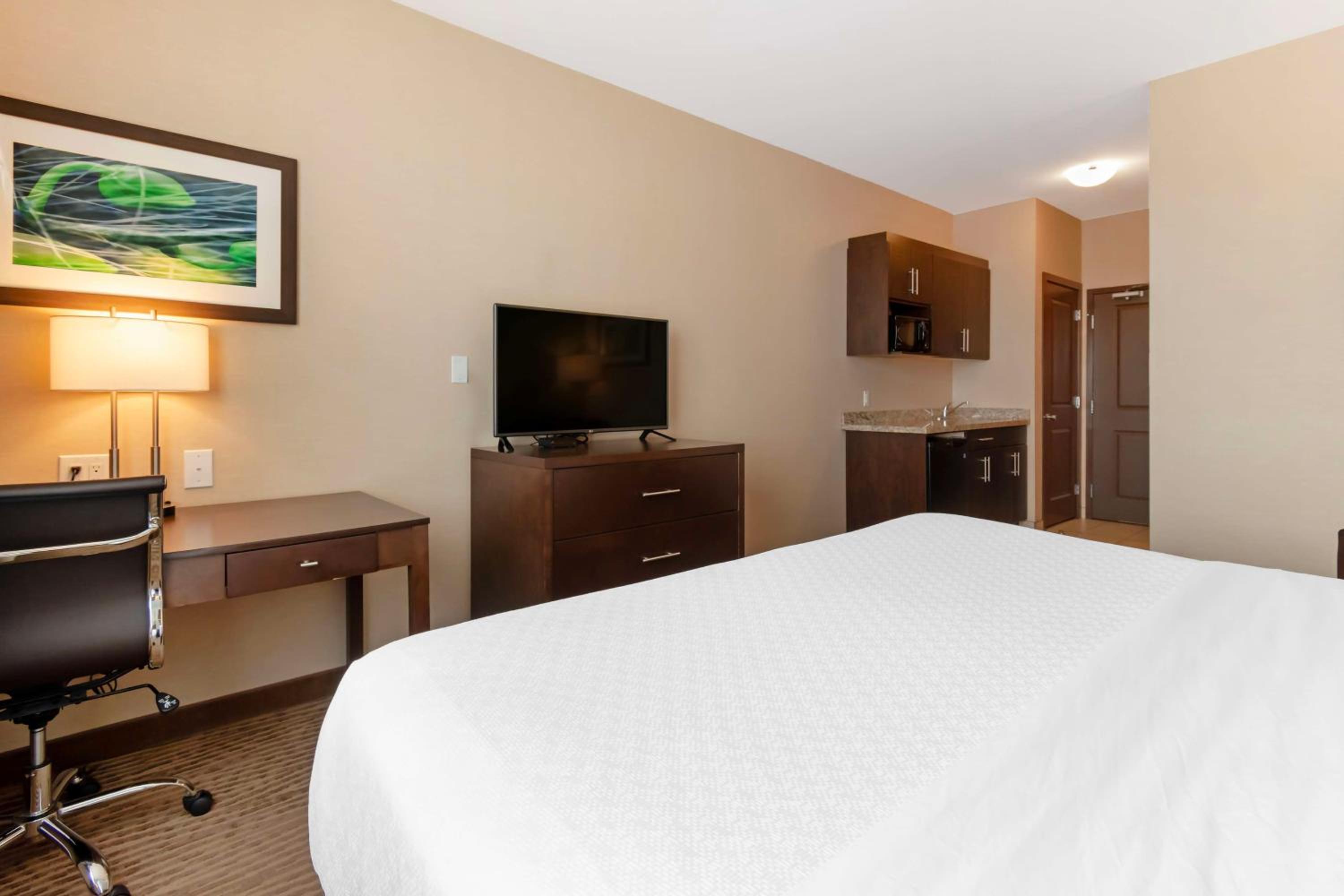 We were recently storm-stayed in Moosomin and had to find a hotel for the night. It was our first time here and this is an excellent hotel. Very, very clean. Our room is large and very quiet. Nice breakfast in the morning. Staff is so friendly. Since we couldn't drive any further and had to stay in town, the staff allowed us to check in early and relax well before the standard check in time. Definitely stay here if you are in the area. Very nice hotel. It even has a small kitchen sink in the room.