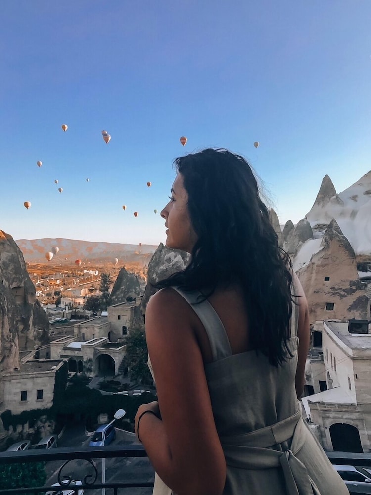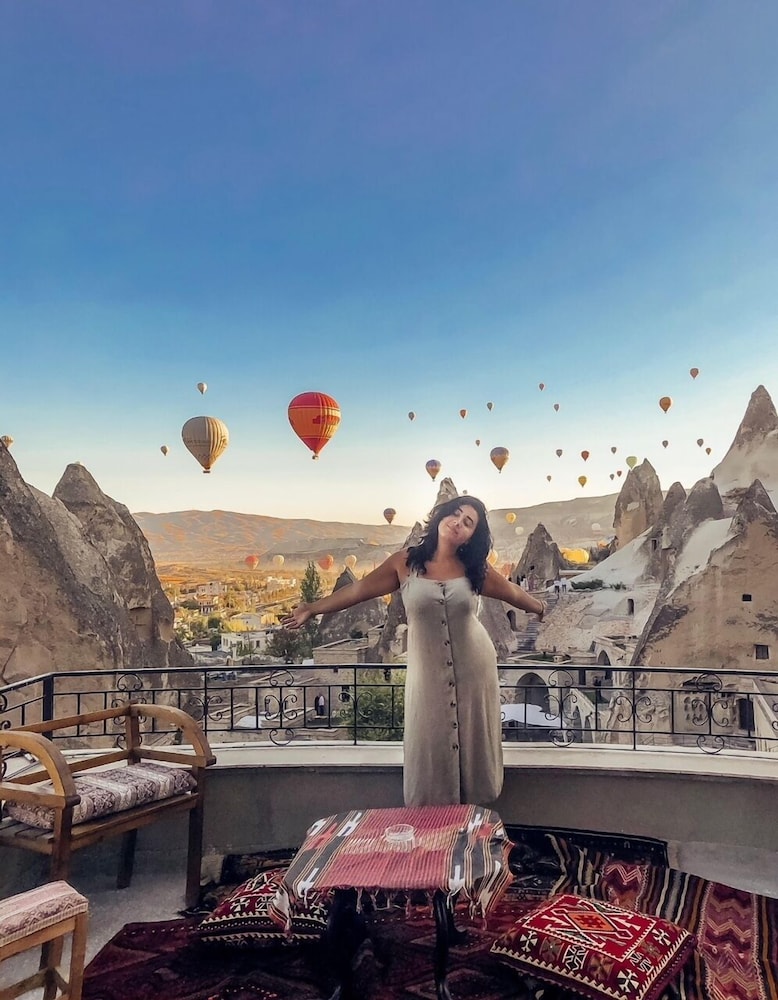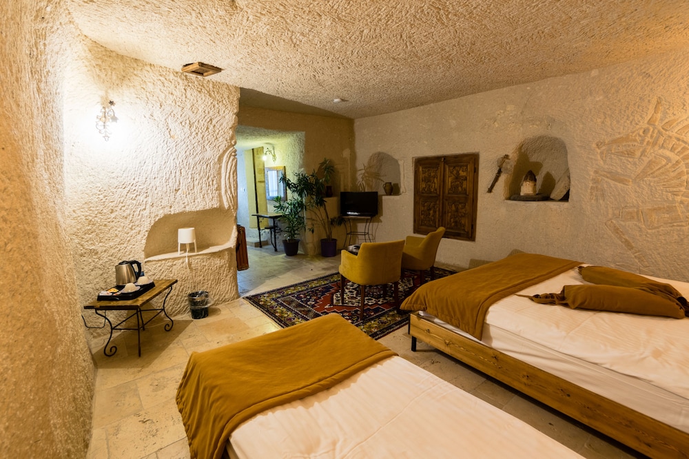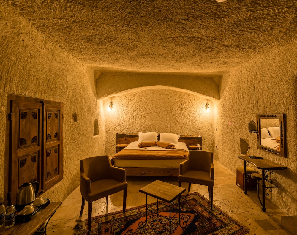 Evlilik yıldönümü için gittik ve junior suitte kaldık.Herşey mükemmeldi oda doğal taştan oluşan mağaranın içerisindeydi ve odamız Göremede ki manzarayı en yukardan gören odaydı.Üzerimiz Love Valley seyir tepseydi buradan anlaşılabilir. Resepsiyondaki arkadaş çok kibar ve çok yardımseverdi.Kahvaltı açık büfe yeterli ve güzeldi.Özellikle gözleme,kek ve kurabiye olması alternatifi arttırmış.Herkesin damak tadına göre birşey vardı.Kesinlikle burada kalmanızı öneririm.