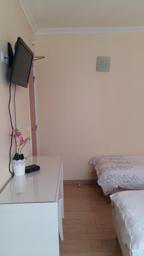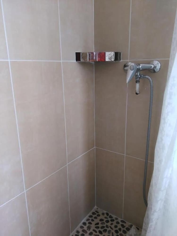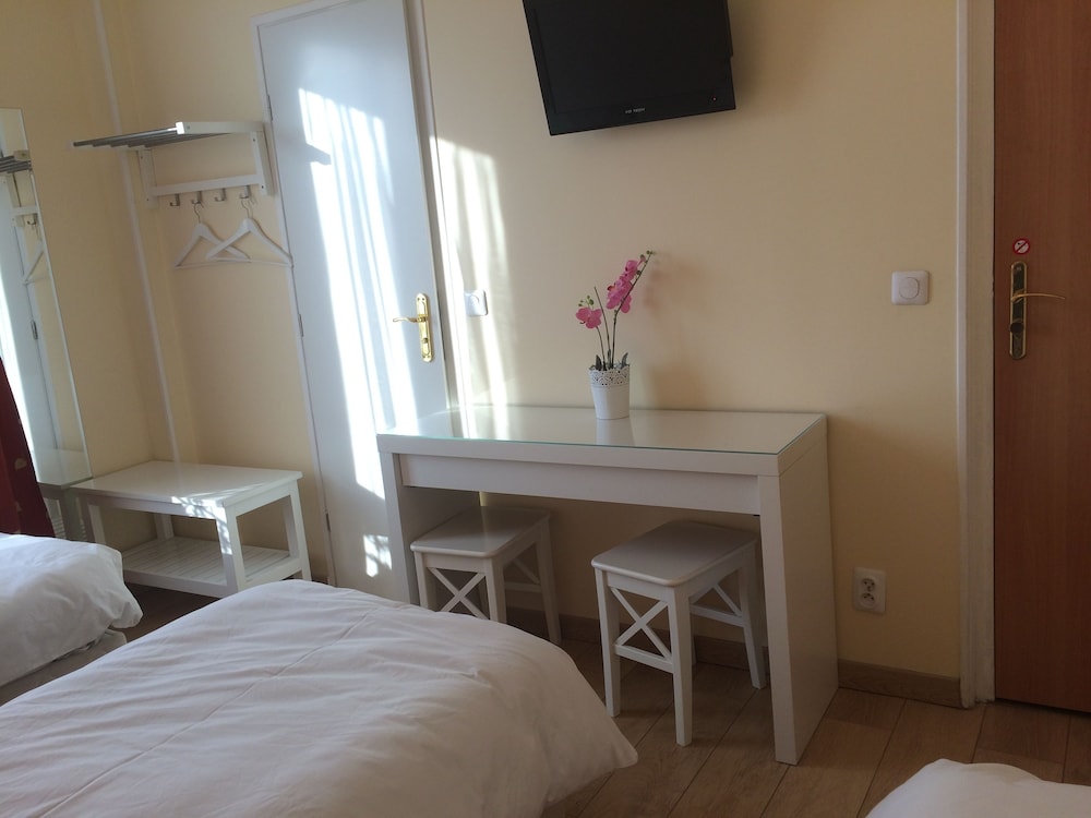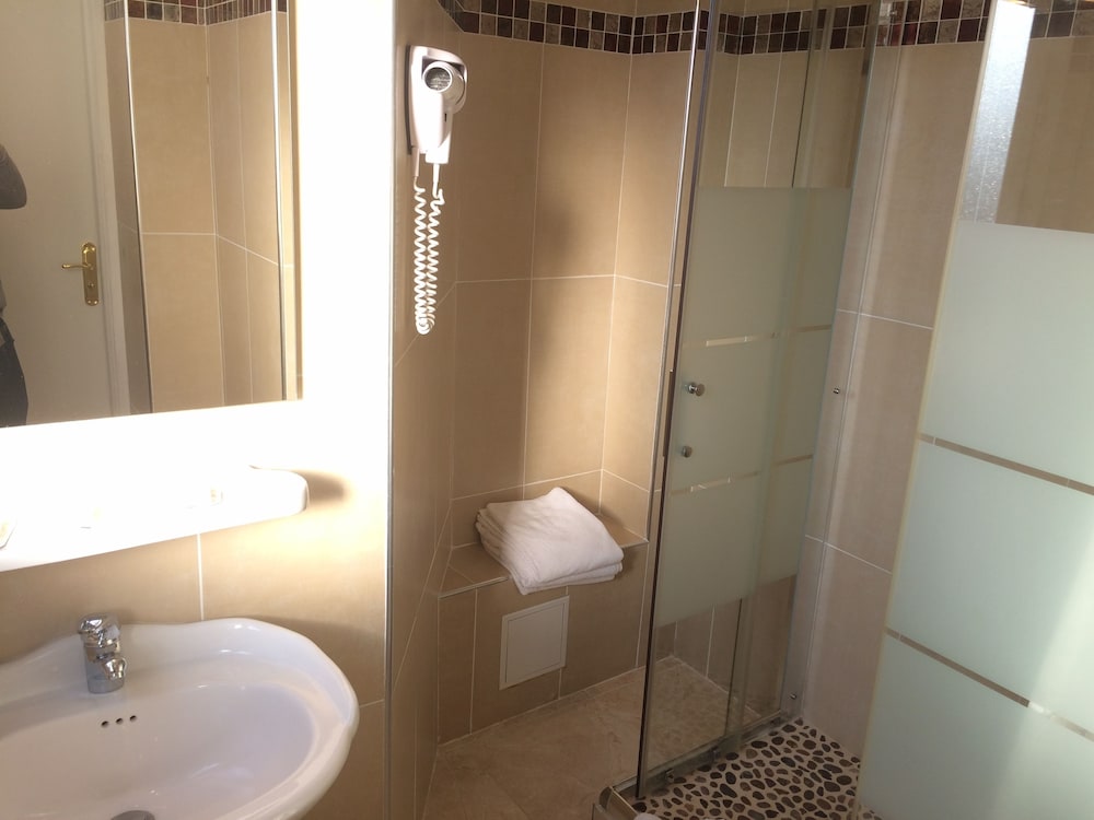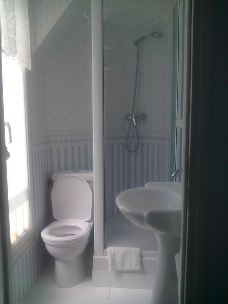 Je me serais cru dans un couvent Lit petit pas de serviette de toilette, ni de gobelet a disposition, Douche sur le palier avec un un rideau de douche qui tient par un fil, pomme du douche inutilisable car cordon trop petit, le toit blanc de calcaire. Douche sert également de pédiluve.Télé pas très bien située. Chambre bruyante. Confort sommaire. Je ne recommande pas du tout. Les deux étoiles sont usurpées et d'un autre siècle.