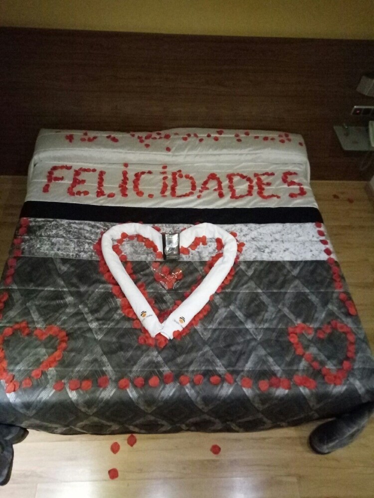 Fui en mi noche de bodas y tuvieron el detalle de poner pétalos en el suelo y hacer un corazón en la cama. Dormimos muy bien y estaba todo bien limpio. Volveremos.