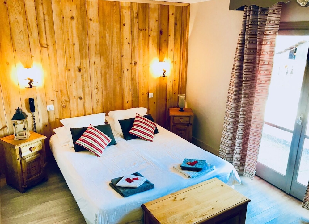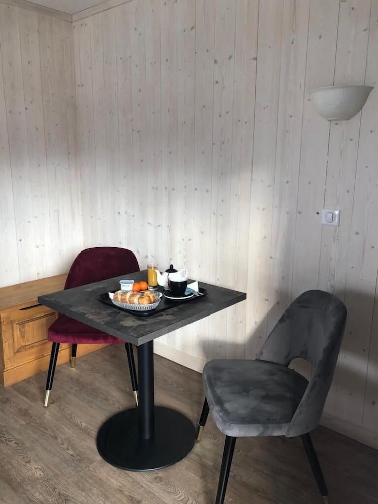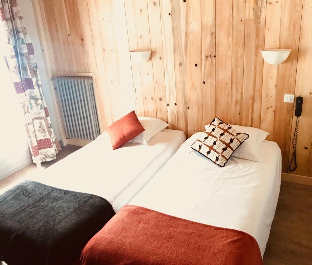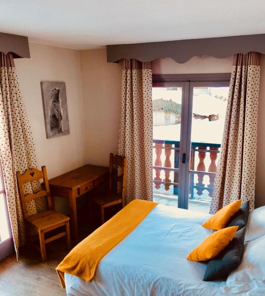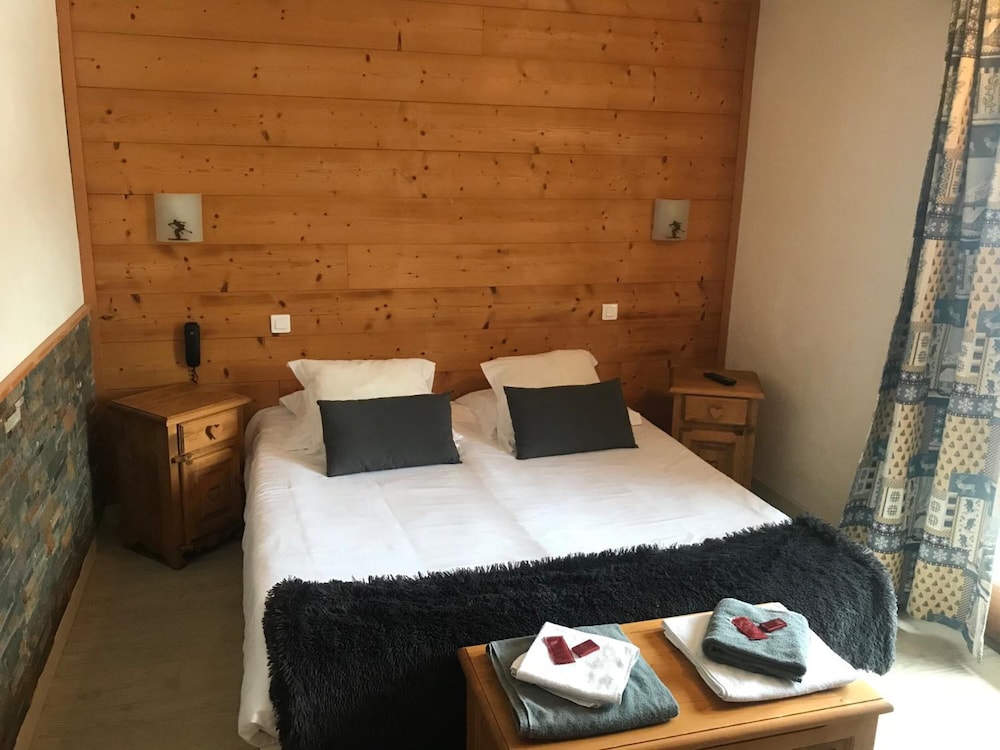 There is a Casino (small supermarket ) a short walk away. Main ski lift only 5 -10mins walk with ski lockers for hire in lift office. There appeared to be about 40 other guests eating in the hotel diner but after about 10pm we didn't hear anyone in the hotel. Comfy bed and lovely view across the town from large balcony. Helpful staff who spoke better English than my French!