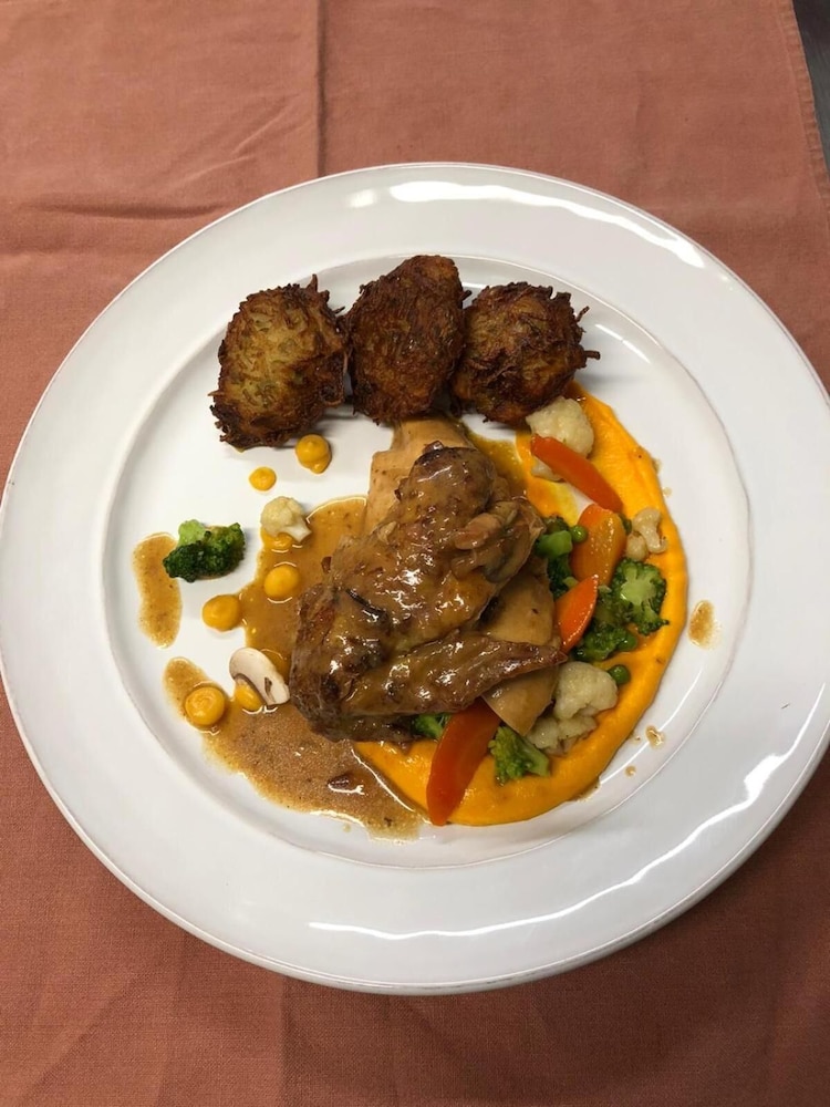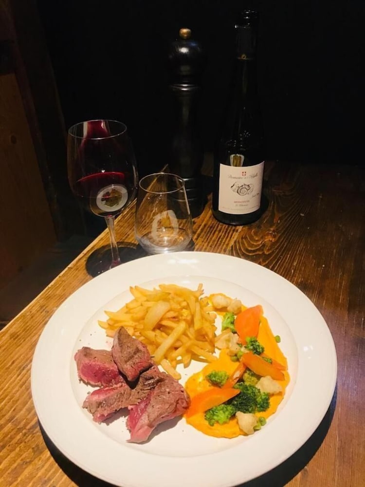 Nice size room. Clean but old. Great shower and lots of hot water. No kettle or tea making facilities. All other guests appeared to be French. Had room only so can't comment on food.