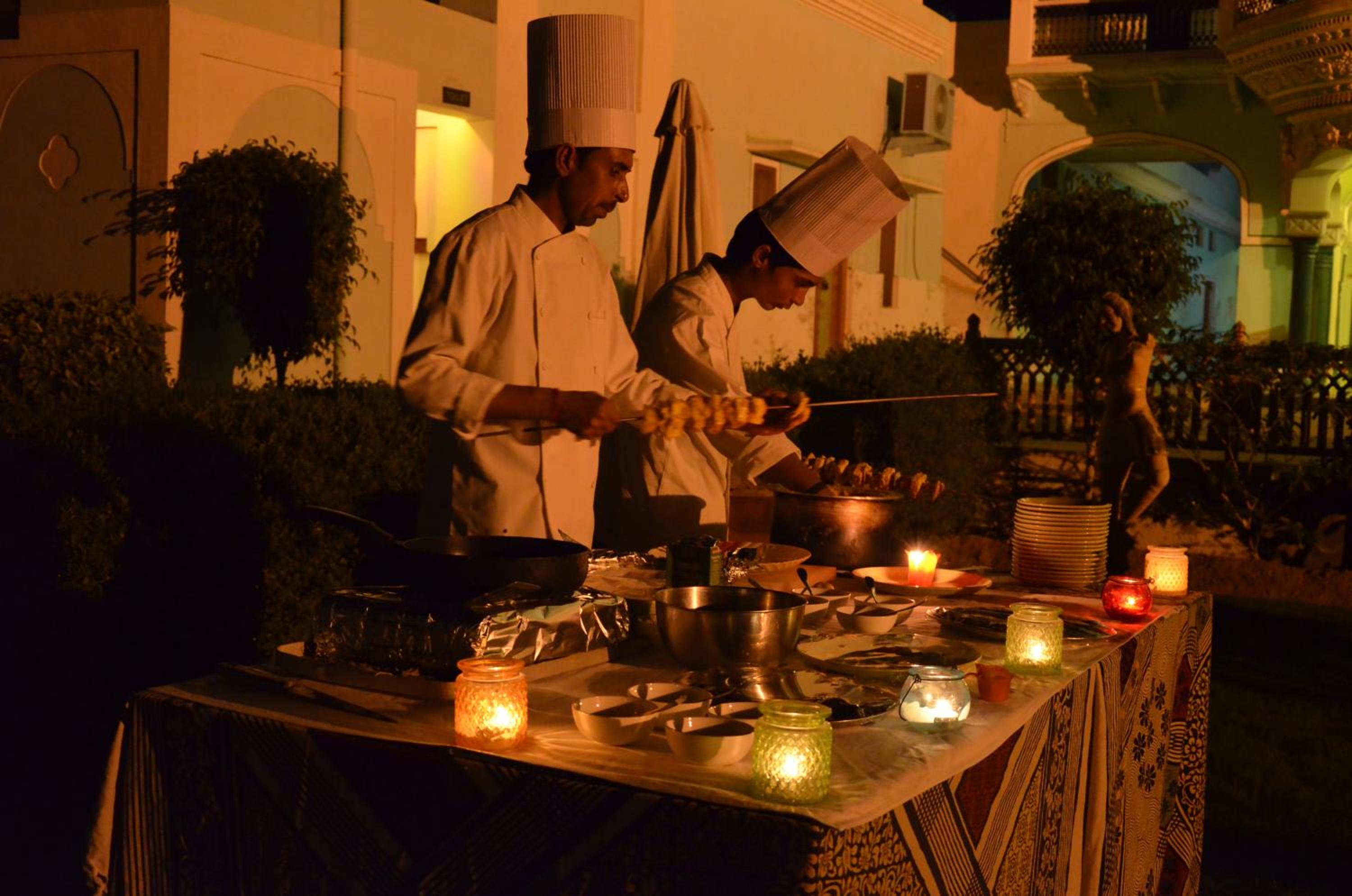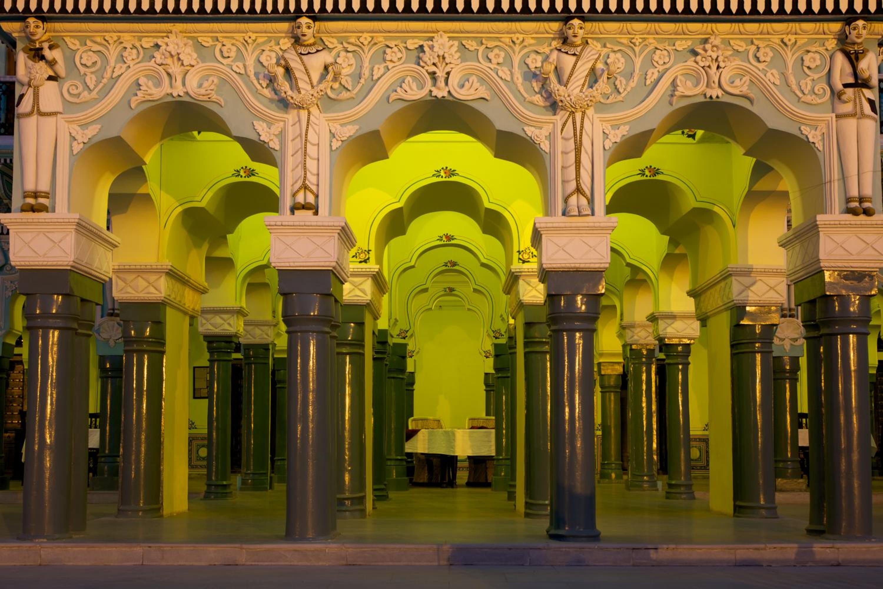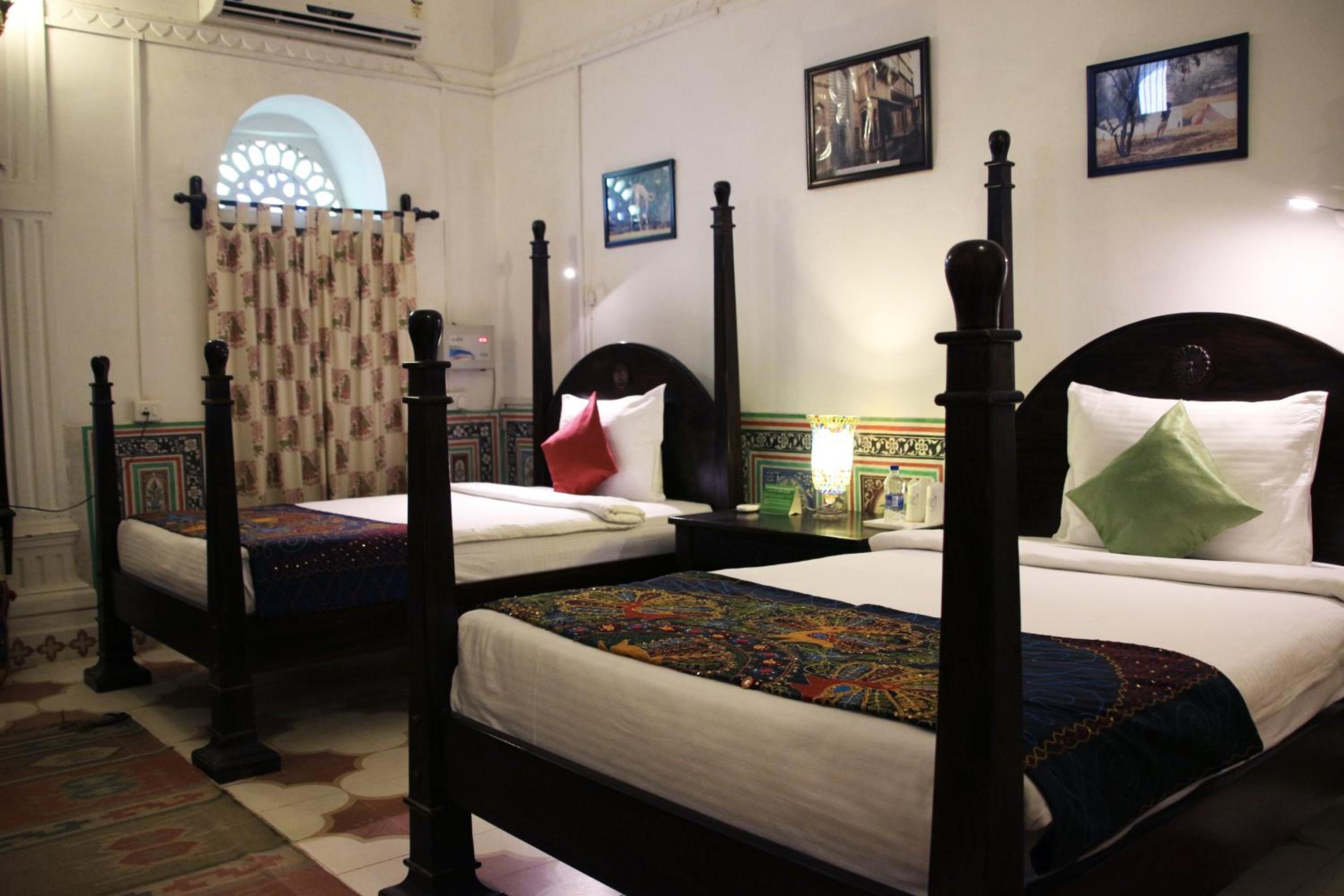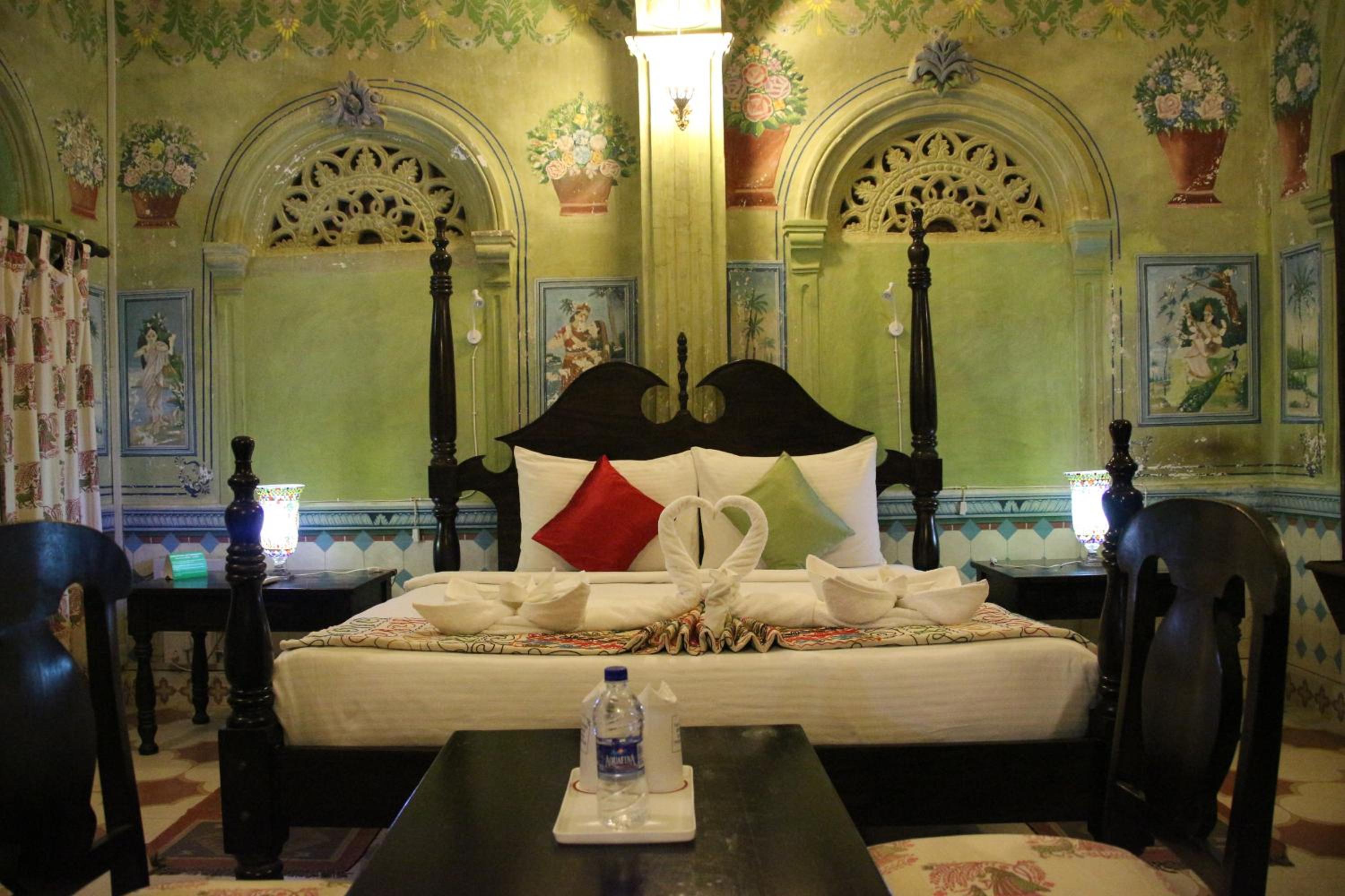 Malji Ka Kamra offers a unique experience in a restored 1920s haveli, featuring air-conditioned rooms adorned with original paintings and wall murals. Each guestroom boasts handmade king-sized beds for a comfortable stay, while the en suite bathrooms provide hot water showers. Situated near Churu Railway Station and Tal Chappar Wildlife Sanctuary, the hotel offers easy access to nearby attractions. Guests can enjoy local experiences and excursions arranged by the hotel, including camel and jeep safaris, folk music performances, farm visits, and picnic lunches. Complete your stay with a delightful dining experience at Spice Court restaurant, serving a variety of Indian and Rajasthani dishes, along with a daily breakfast. Book now for an unforgettable stay at Malji Ka Kamra.