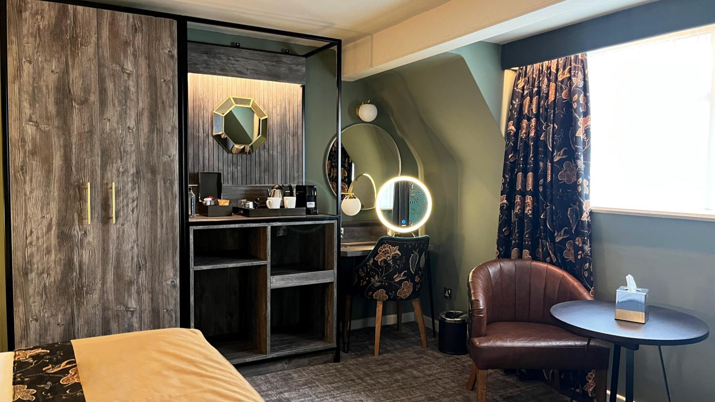 Compact but very comfortable and stylish room. Modern and new fittings, nicely decorated. Tasty breakfast, good selection of hot and cold options in spacious dining room. Big car park (free parking). Only minutes walk from high street down the hill. Friendly and helpful communication from hotel. Would stay again!