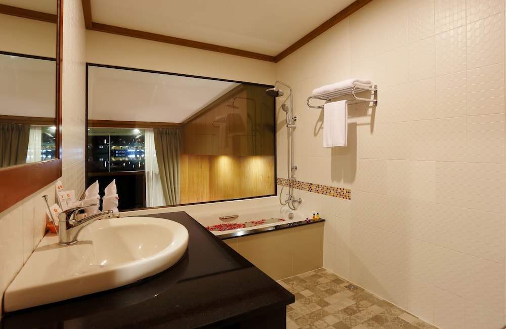 We stayed in the cheapest room ($30), and we were pleasantly surprised at how nice everything was. The room had beautiful tile and granite, a modern feel, a giant comfy bed, and a lookout a small part of the lagoon even without being “lakeside.” The pool looked very nice. The breakfast was extensive and delicious. The front desk staff helped to easily coordinate a taxi to the airport (800 baht). And the hotel was within walking distance to boat avenue, the Friday night market, and even the Wat Choeng Thale temple. We would definitely stay here again!!