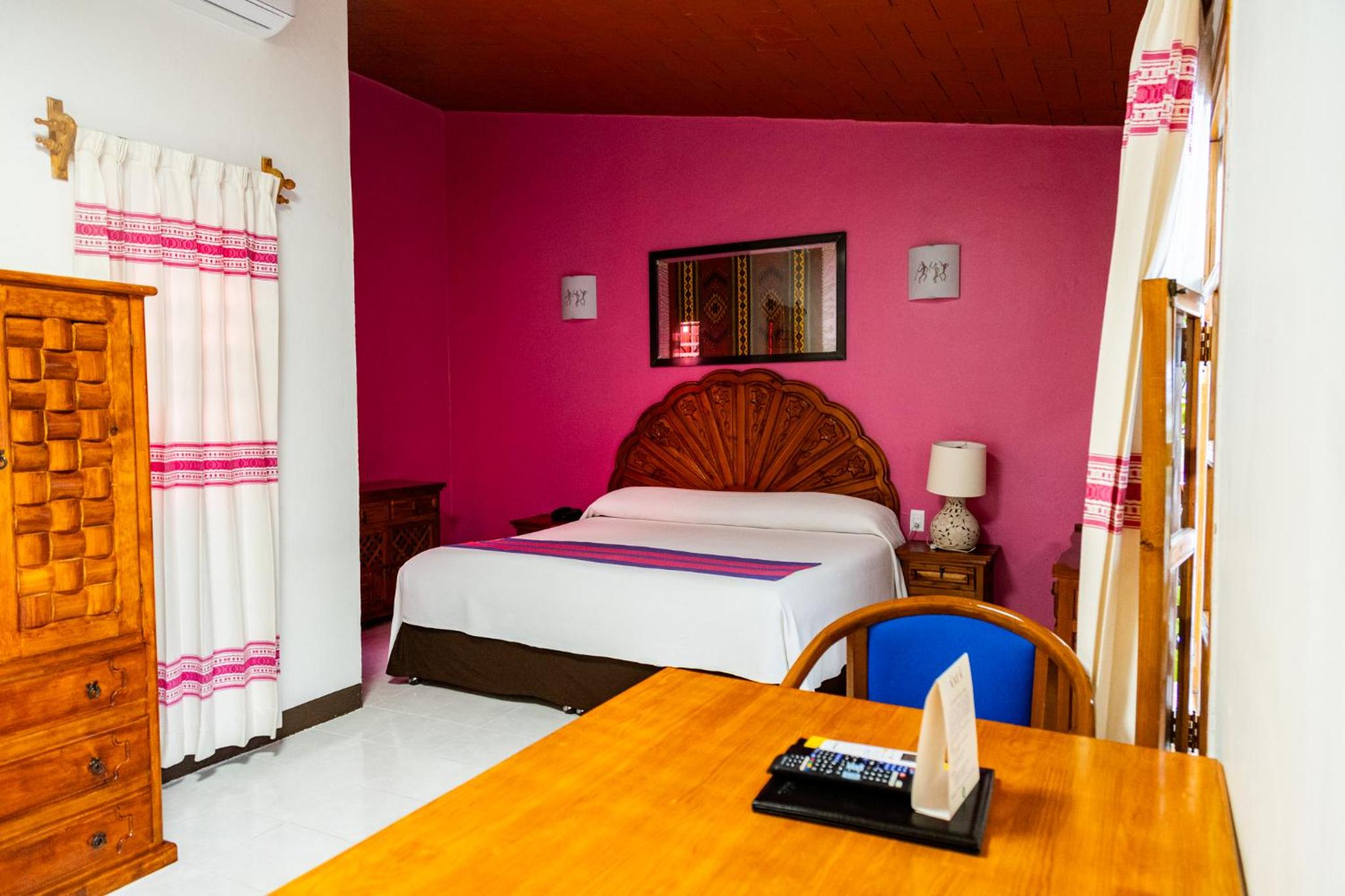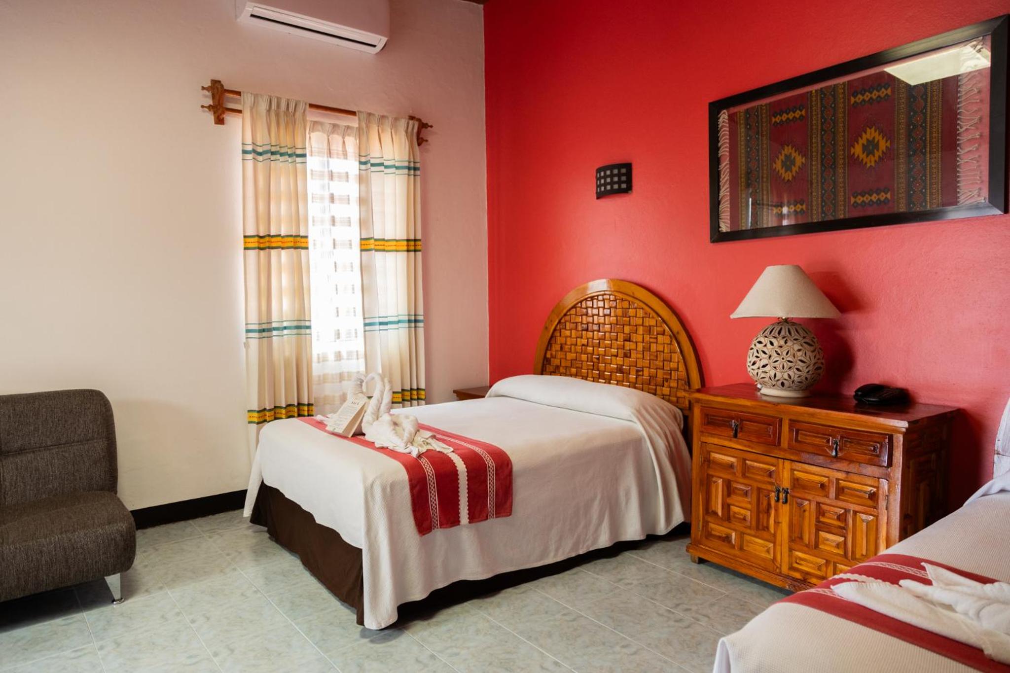 Experience the charm of rustic Mexican décor with vibrant colors in our air-conditioned rooms. Enjoy modern amenities such as free WiFi, cable TV, and a private bathroom for a comfortable stay.