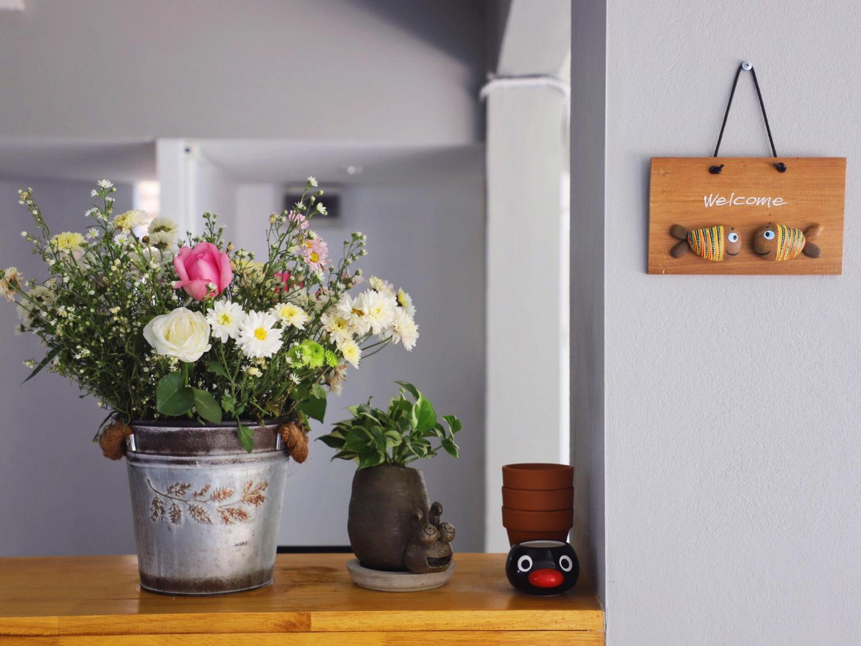 -convenient/safe location in a quiet side road, one minute from restaurants, 7/11 etc. laundry place behind for 40b/kg.