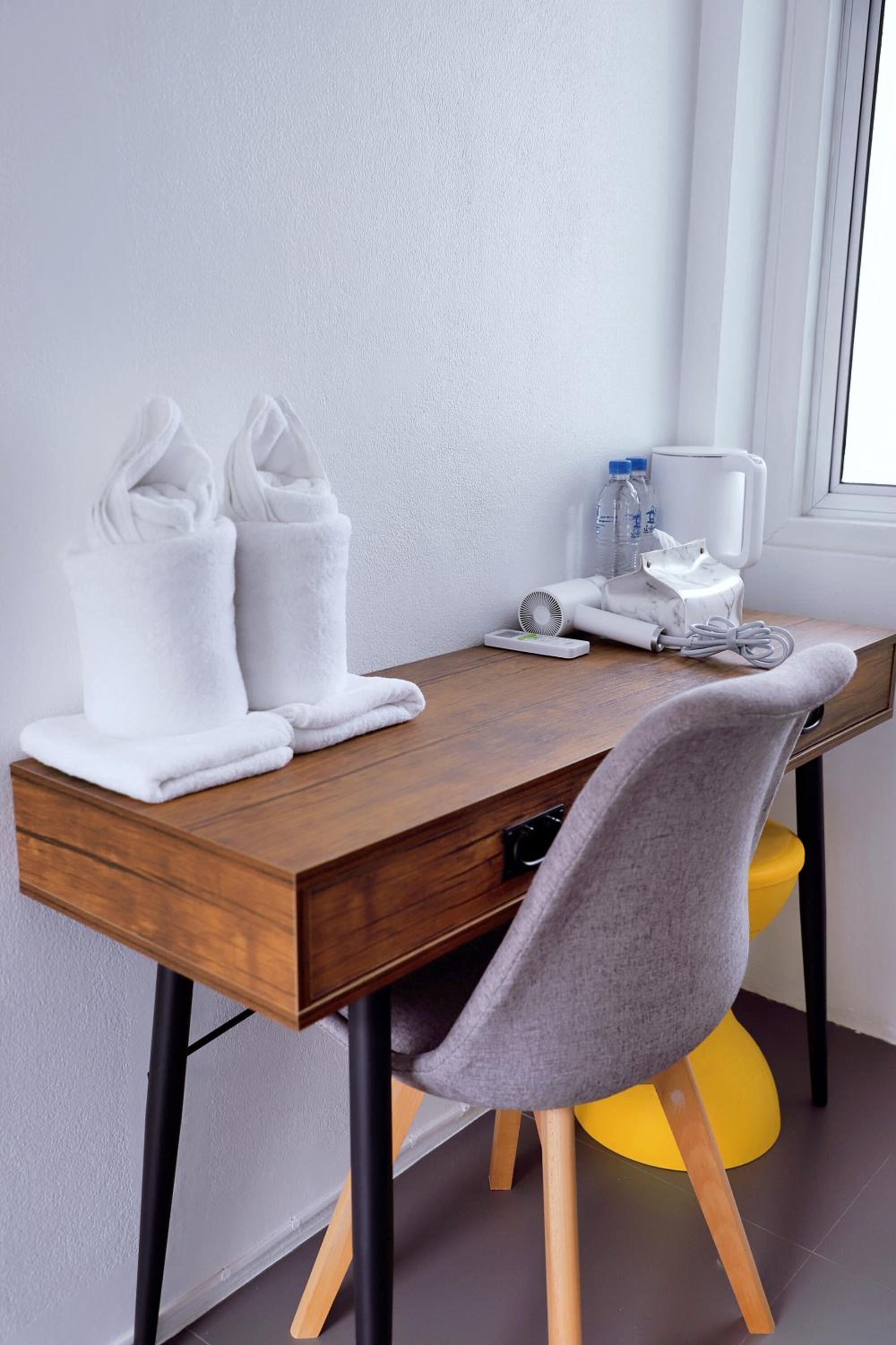 Very difficult stay. I had to change rooms as the one I got first time was very bad, the window was glued with some sticker so no good lighting, limited space for clothes, the towels were dirty too. They changed the towels with new ones - but such bad quality the plastic ones that don't absorb no water :)) useless towels really. The beds were also rock solid, you would sleep more comfortable on the floor