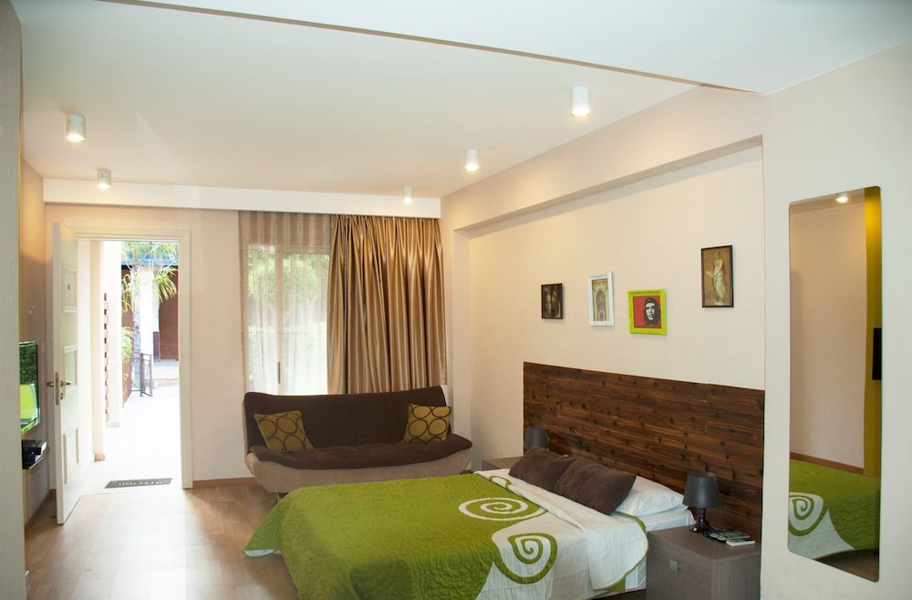 Проживание и расположение апартаментов очень хорошее, комфортное. Все отрицательные отзывы об этих апартаментах, которые я читала до отъезда, считаю недостоверными. Уютный номер студия, за десять дней трижды проводили качественную уборку.. Мини кухня снабжена всем необходимым..Море совсем рядом, Вообще есть все для спокойного отдыха. Стройки, о которой я читала в отзывах, не было.