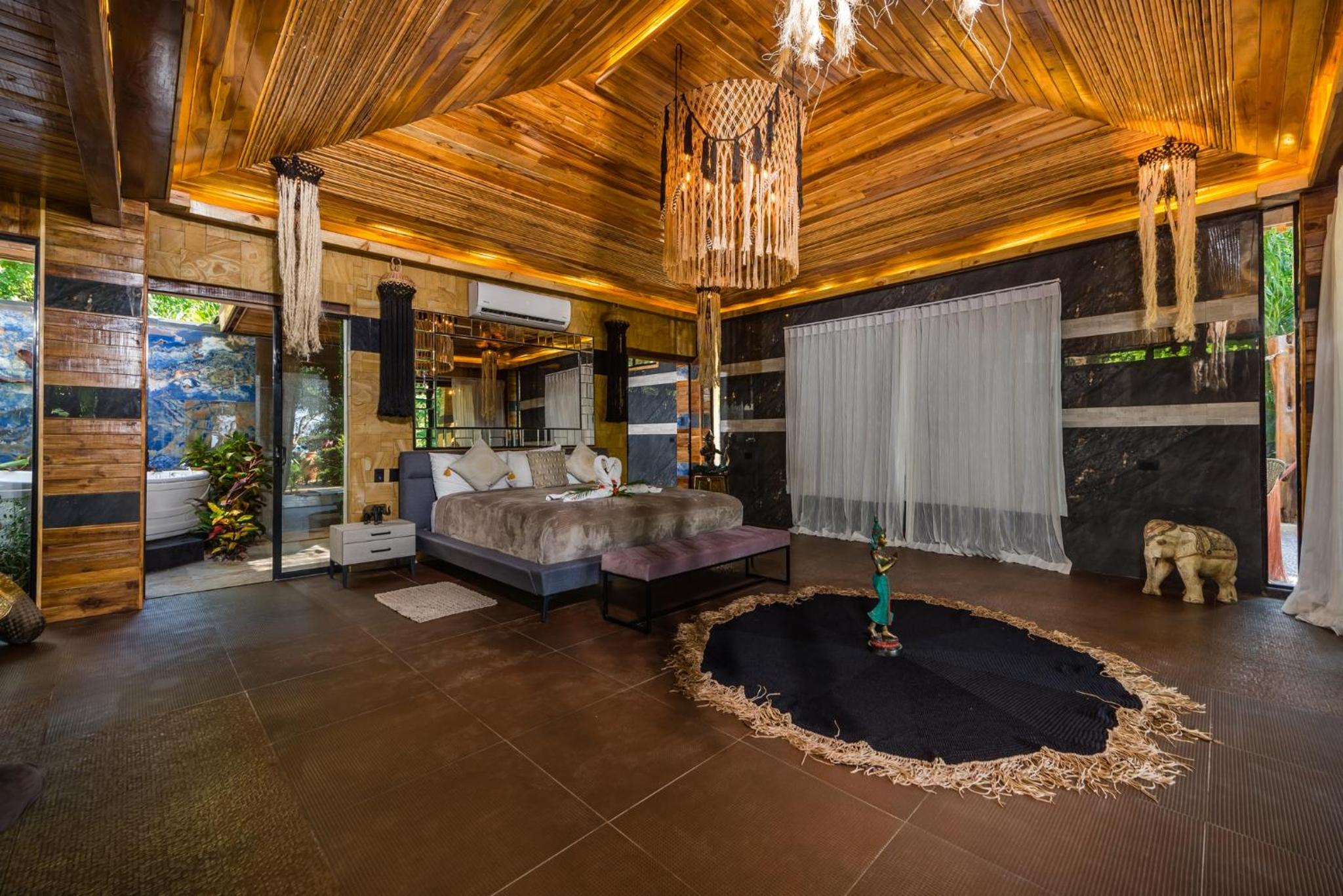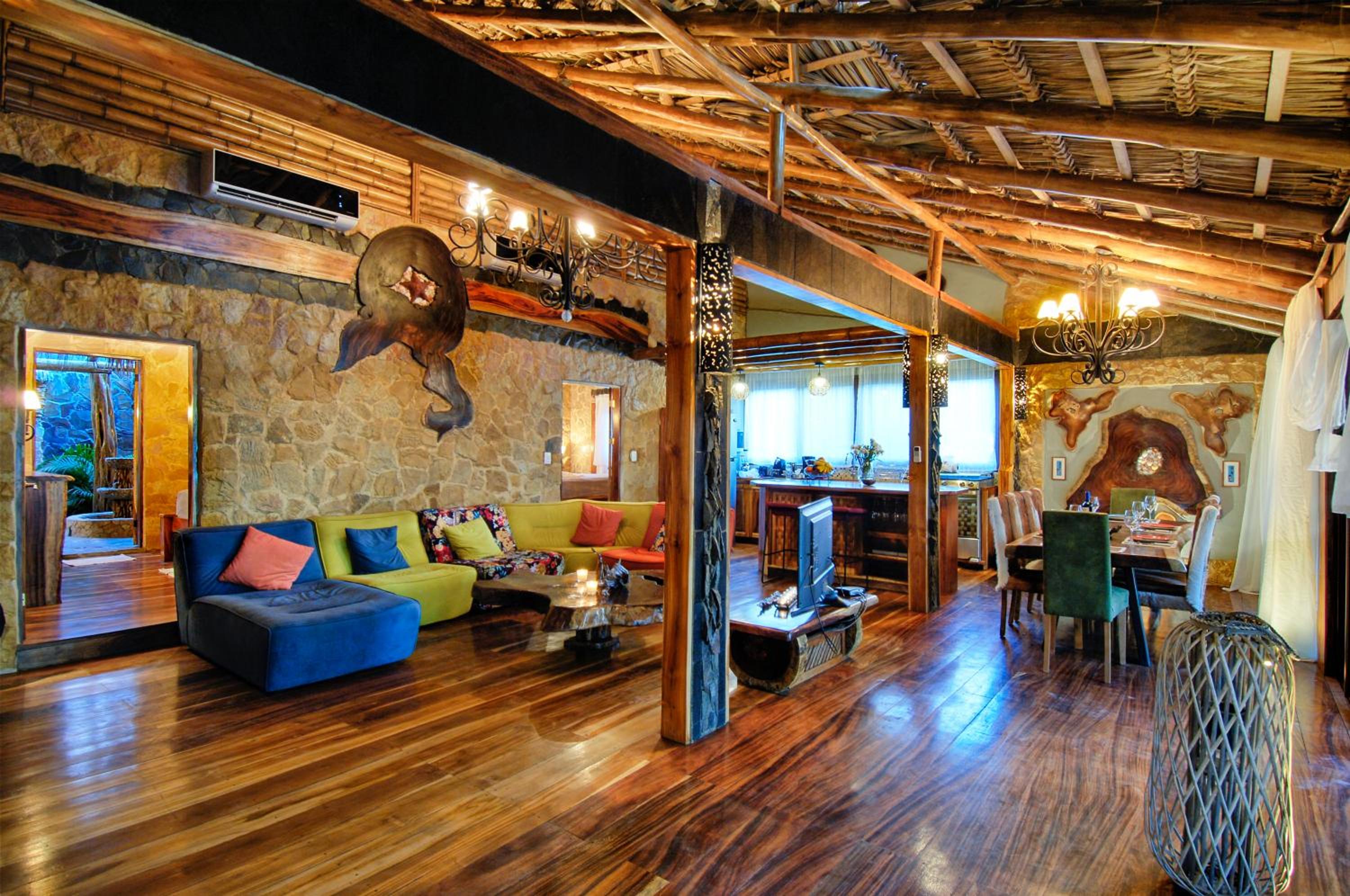 The interior design of jungle bungalows amazing.
