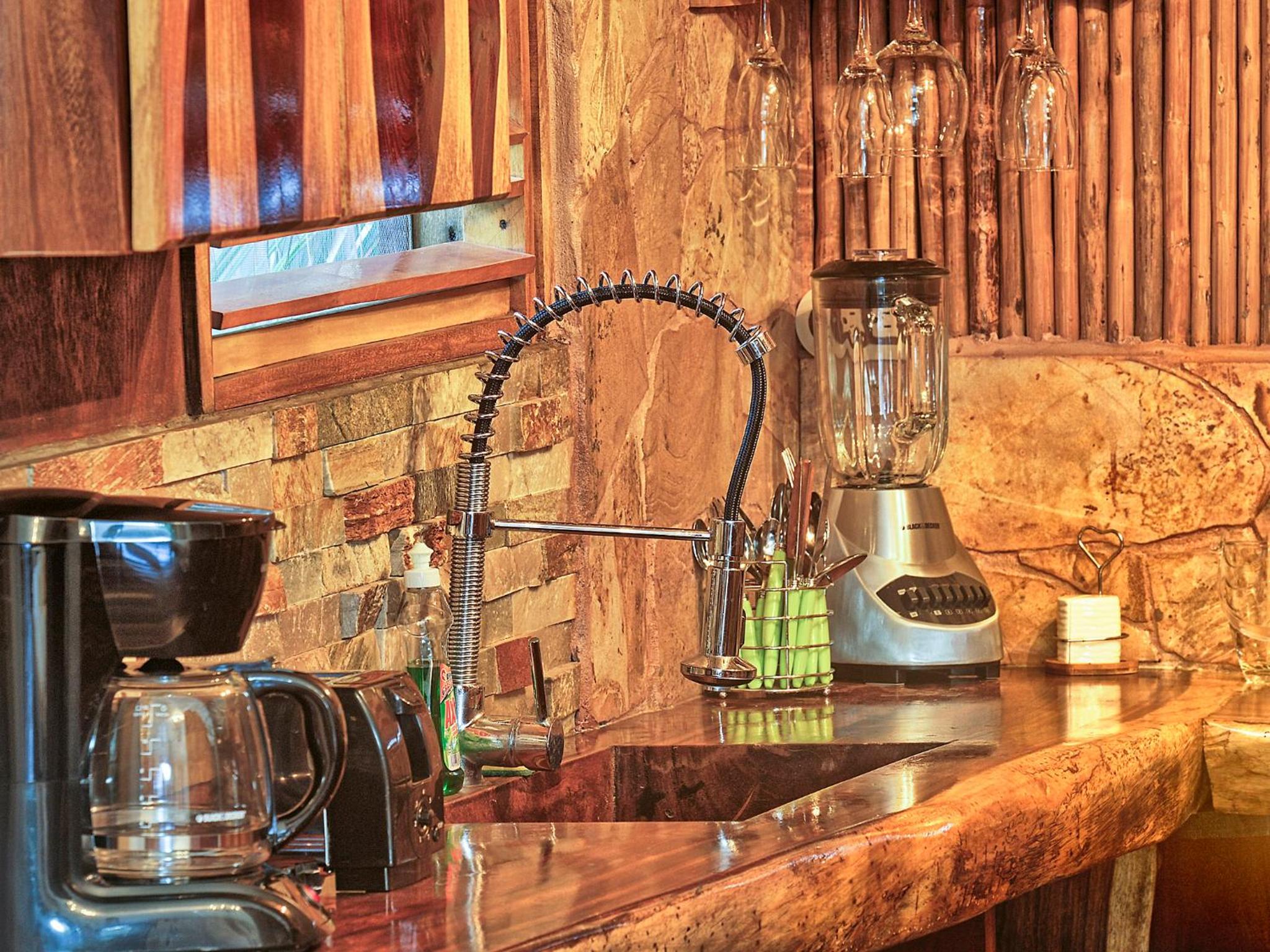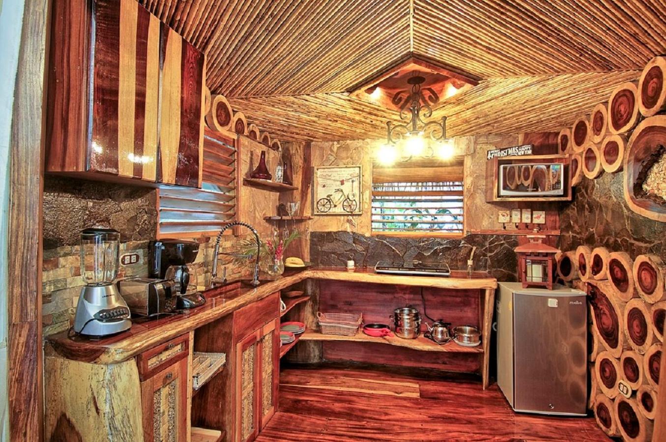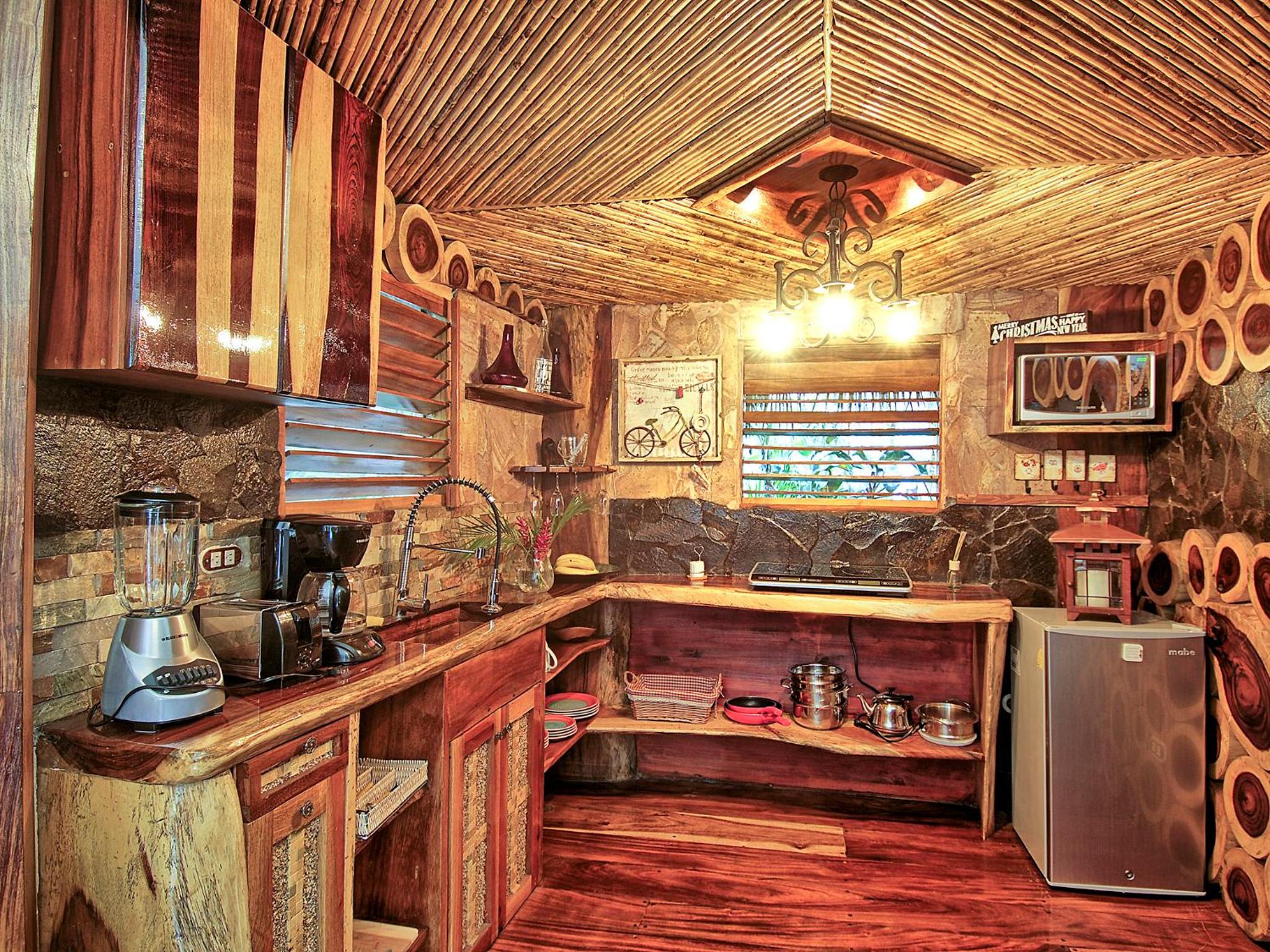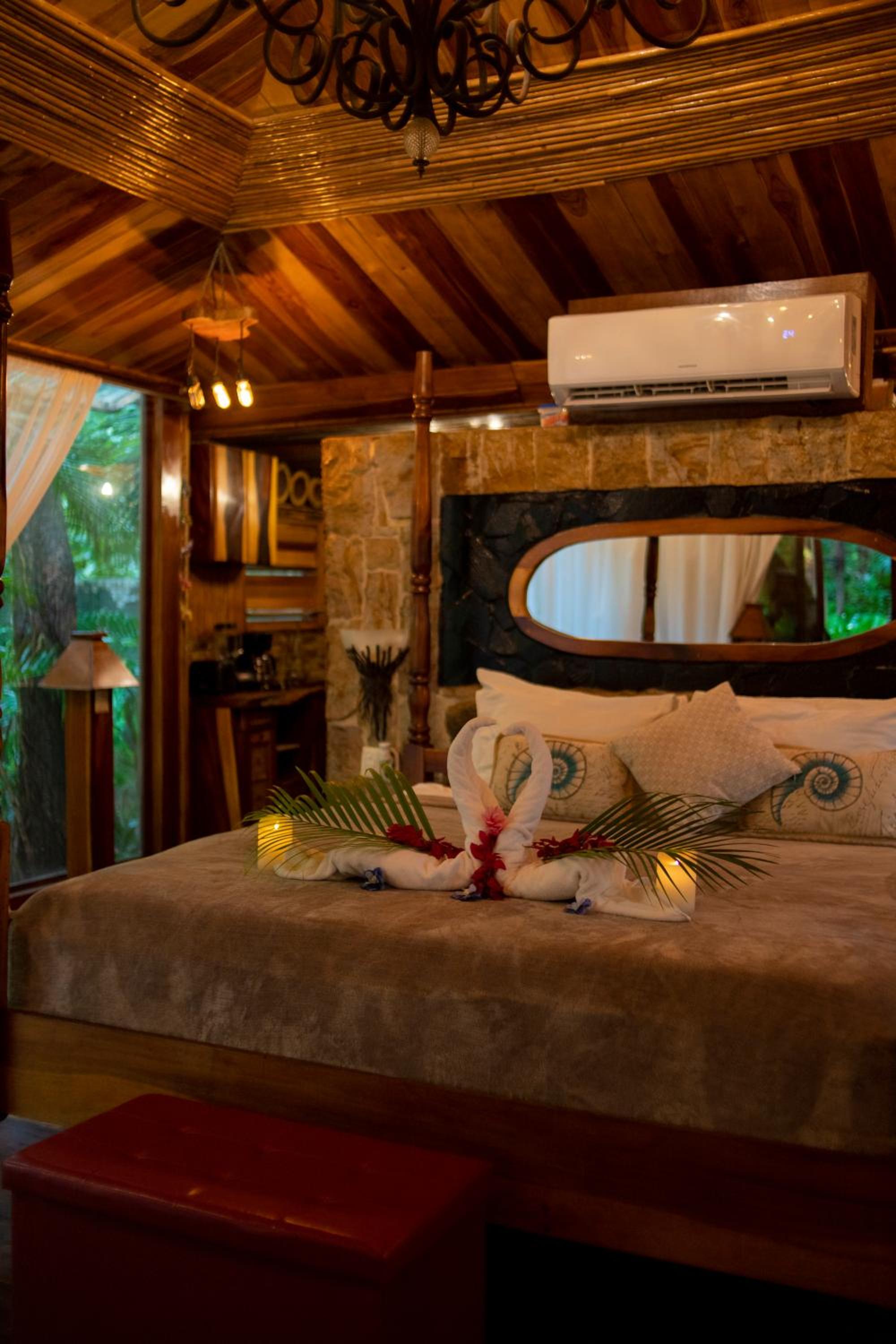 Ocho Artisan Bungalows offers seven luxurious bungalows, each featuring a king-size bed, two single beds, air conditioning, and large screen windows providing panoramic views. The spacious 600 ft.² bungalows also include a fully equipped kitchen, en-suite bathroom, and indoor/outdoor shower for a comfortable stay.