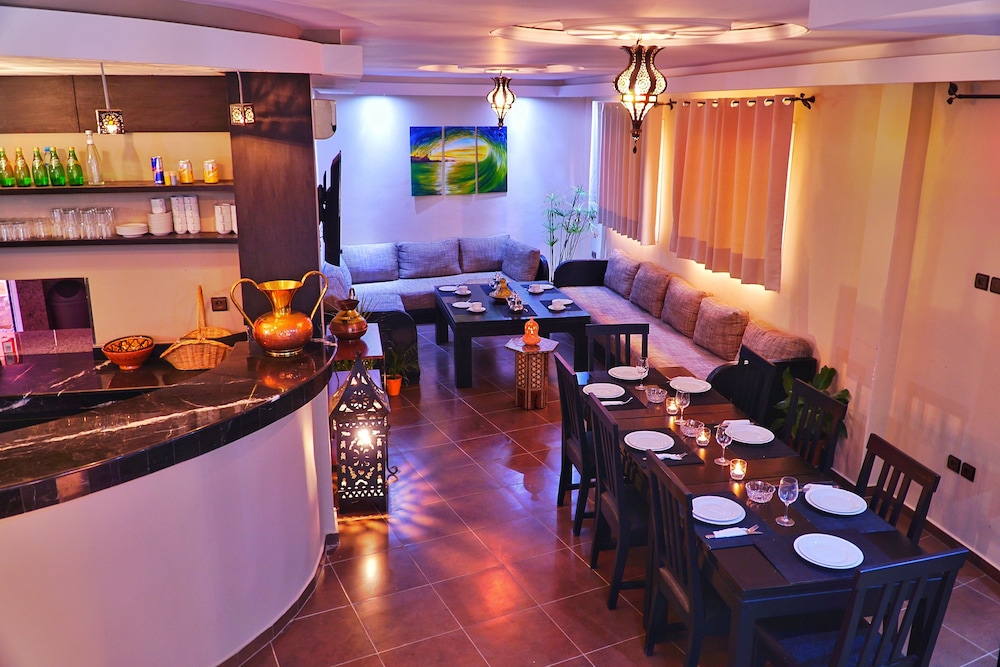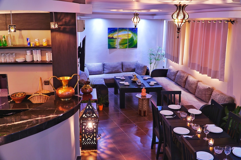 Habib and staff were the kindest, most accommodating people in Morocco! Seriously, this hotel is the BEST! From the moment we arrived, we were warmly greeted and taken to our beautiful and new room. Everything works and the hotel is very well maintained for being two years old! The breakfast varied daily but was always delicious. The rooftop is a nice spot to hangout with shade and sun. There are board games and organized yummy dinners every day where you can meet the other guests. The cook here has talent. And everything is affordable: yoga, surf lessons, food, etc. the beach is walking distance. Lastly, Jacque, Habib’s dog is adorable! Thanks guys for an unforgettable stay. We fell in love with Tamraught and will be back for sure. Best of luck!