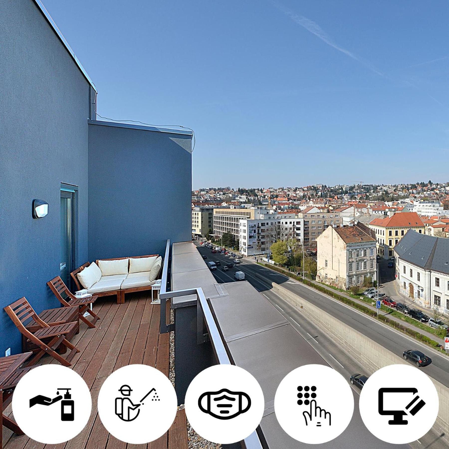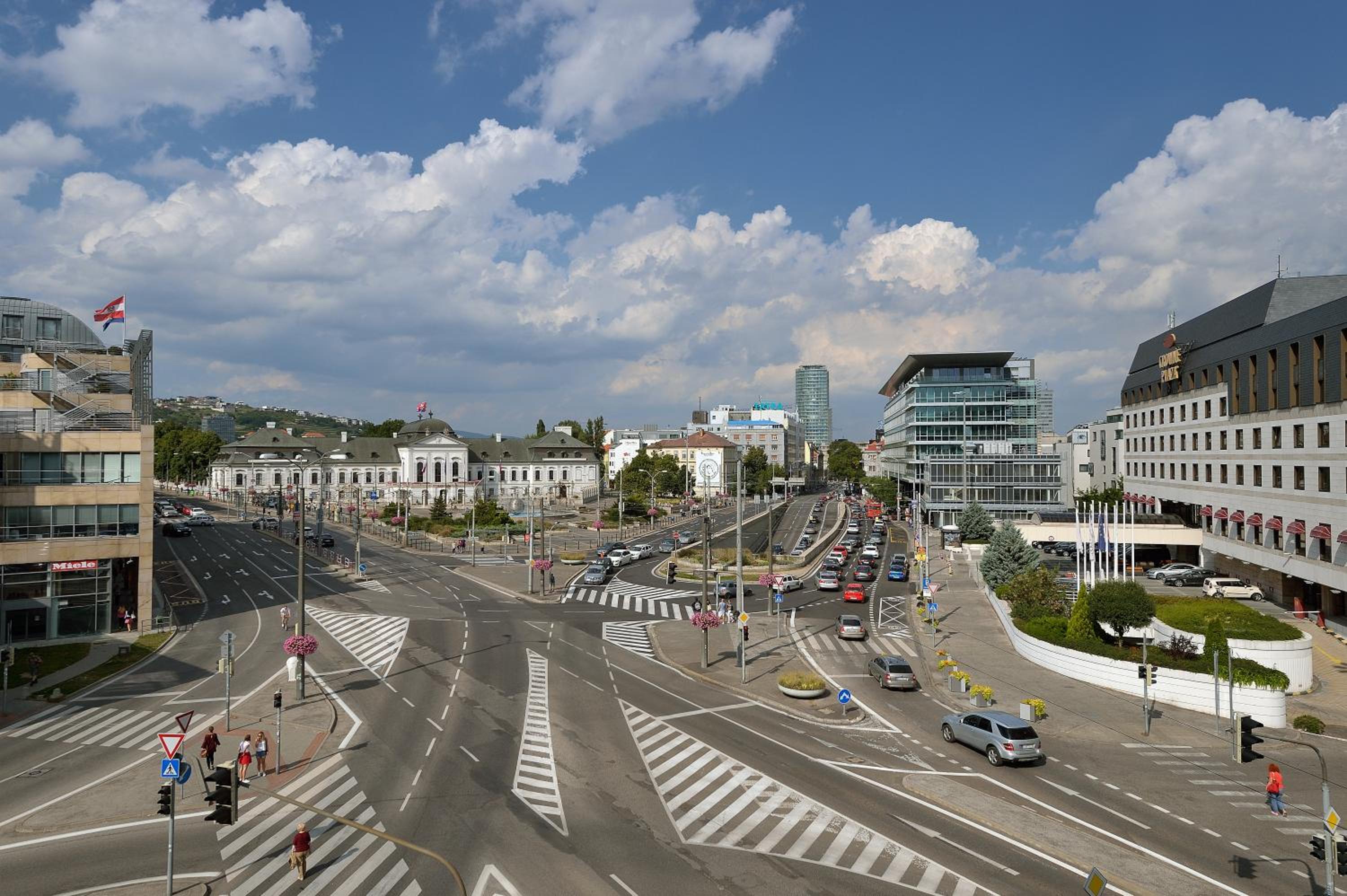 The UFO tower is ten minutes walk, Bratislava castle less than that. Old town less than a minute.
