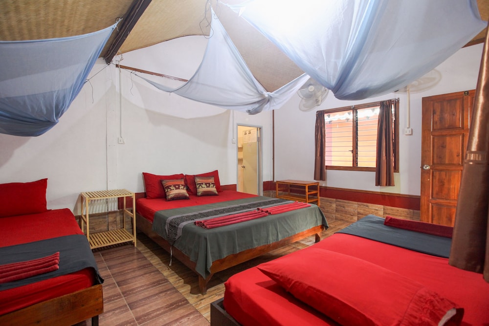 Avant tout je tiens à critiquer tout les commentaires négatifs concernant cette établissement. Les gens parlent de moustiques et chien dangereux, hors les chiens sont super gentils et les moustiques on ont trouvent par tt en Thaïlande. Il faut respecter le travail de ces gens .le bungalow est tres propre avec eau chaude, frigo et ventilateur, et bouilloire , le café et l'eau (tres cher chez 7 eleven 25 bath) gratuits et à volonté. L'accueil du propriétaire italien est top .