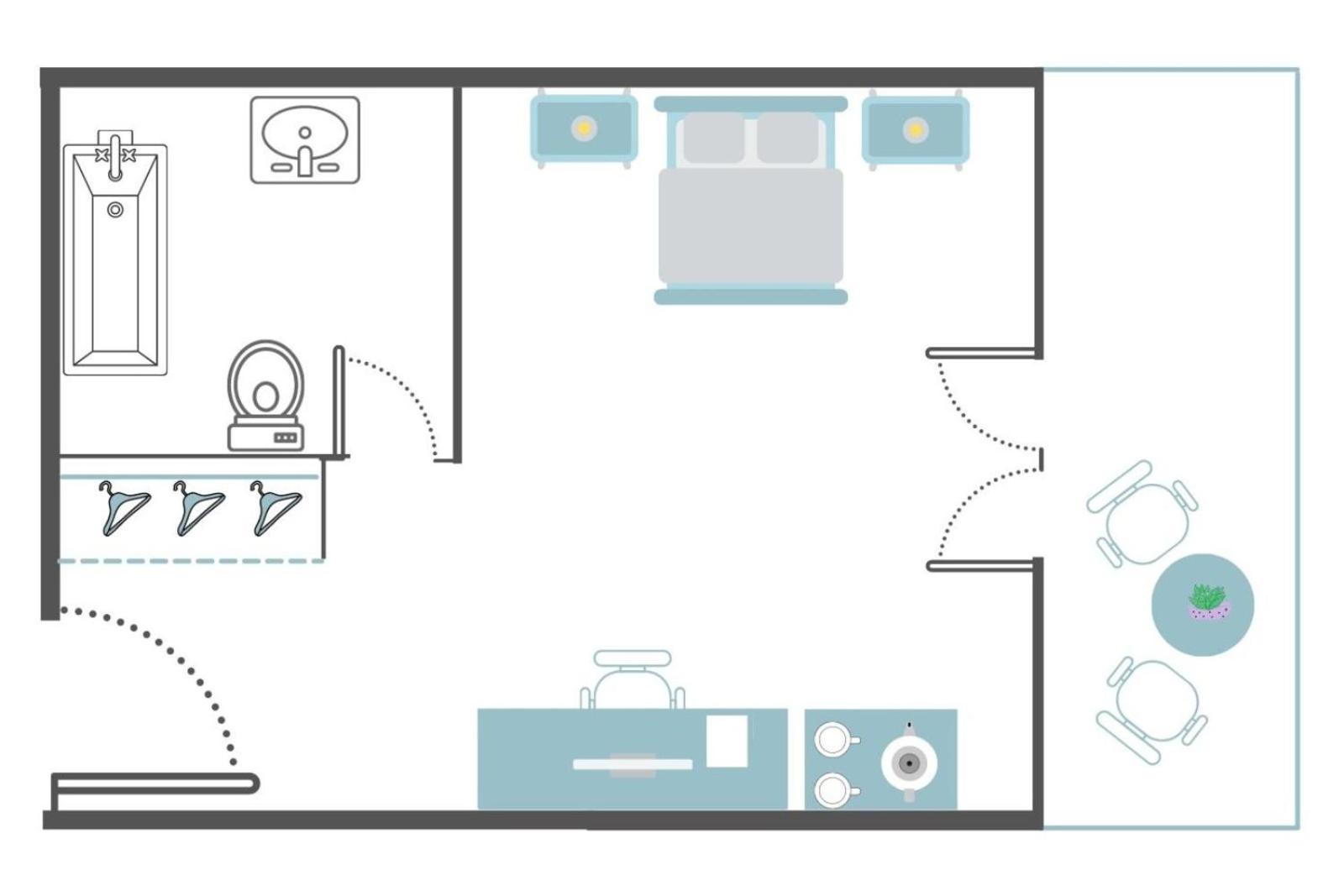 Lack of furnishings in the room (nowhere to hang clothes apart from one rail upstairs but there were 4 of us) and only 1 drawer each upstairs. No drawers whatsoever downstairs!