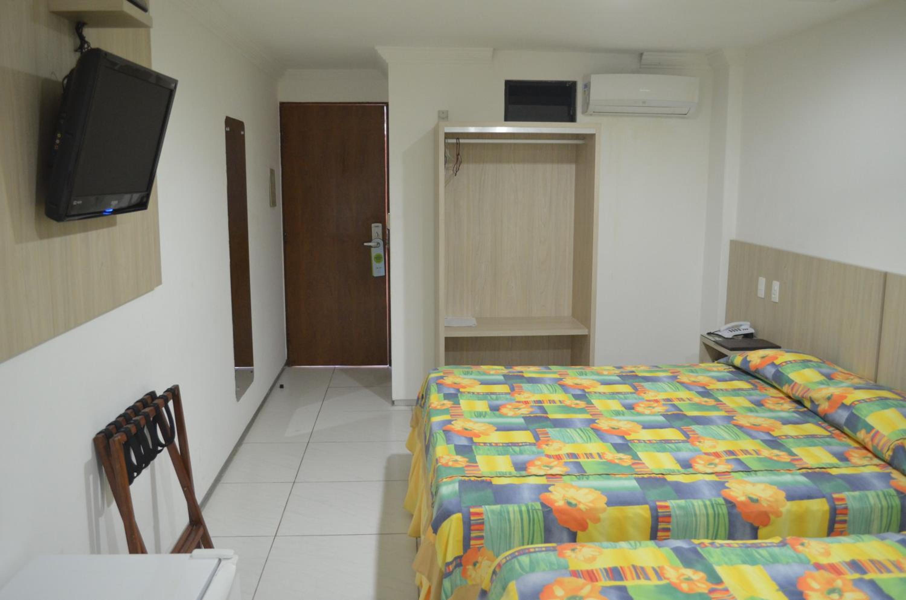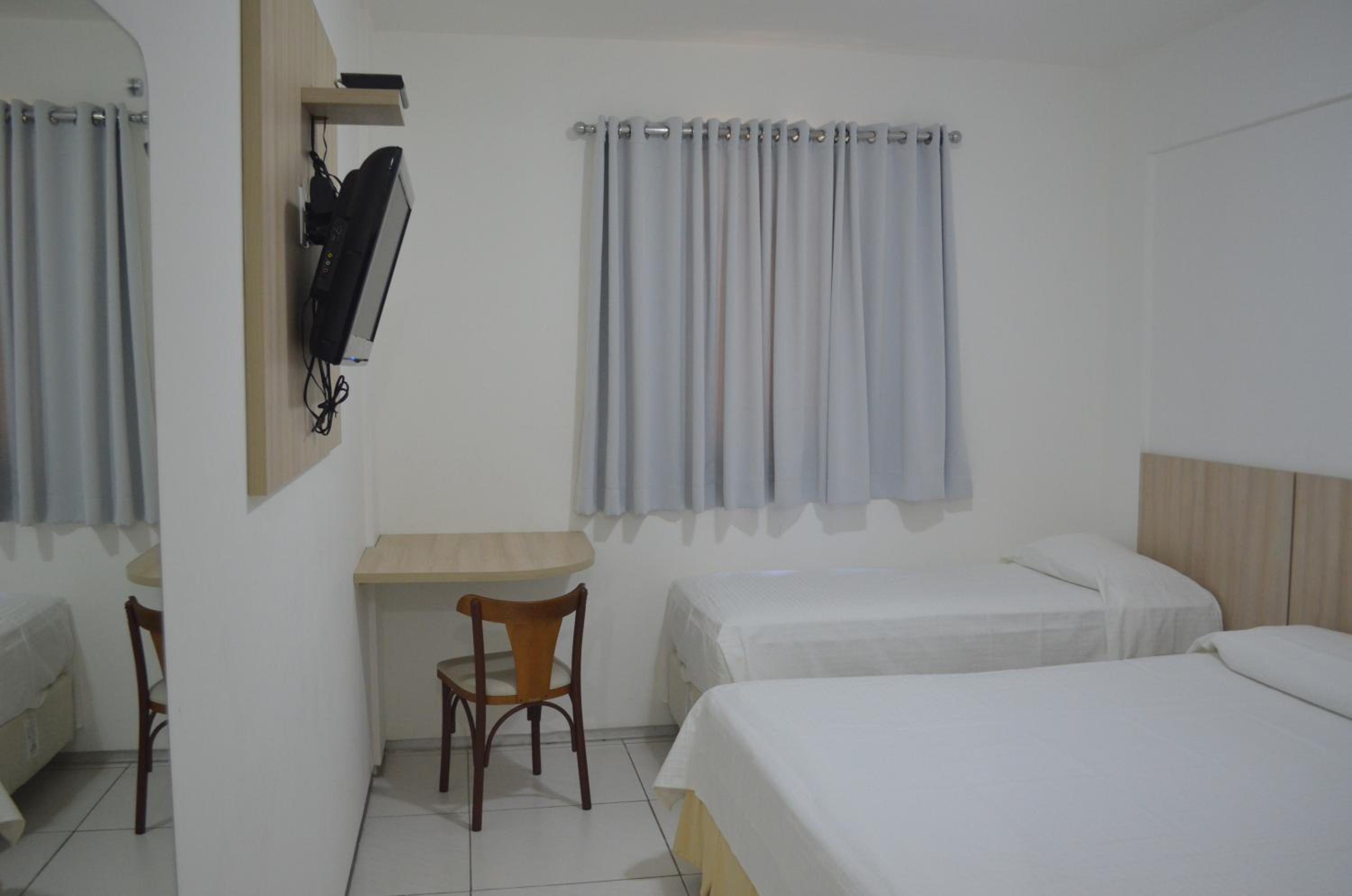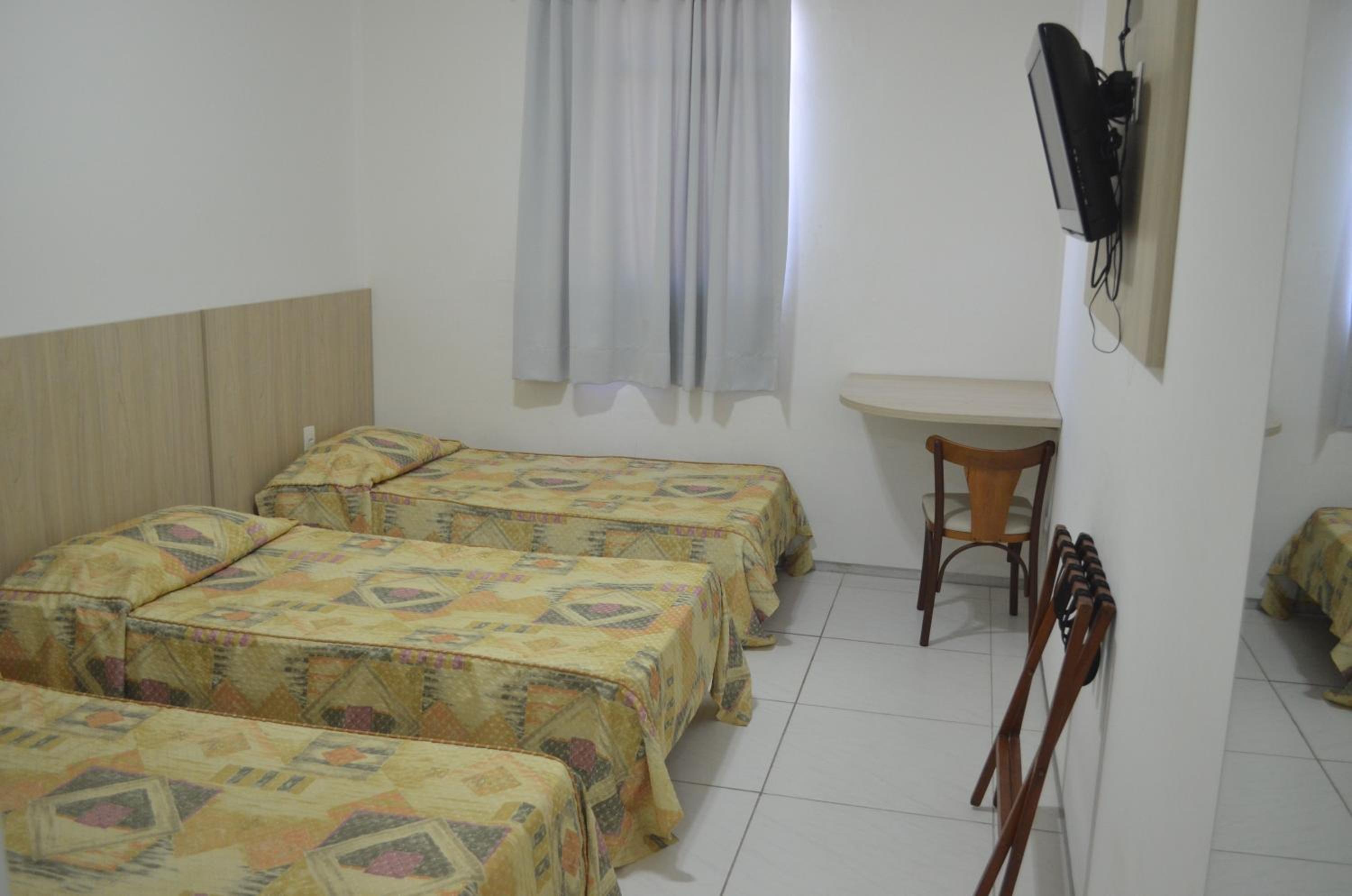 Os quartos e banheiros precisam de uma boa reforma. São bem pequenos e estão bem desgastados. É um hotel bem simples pelo preço.
