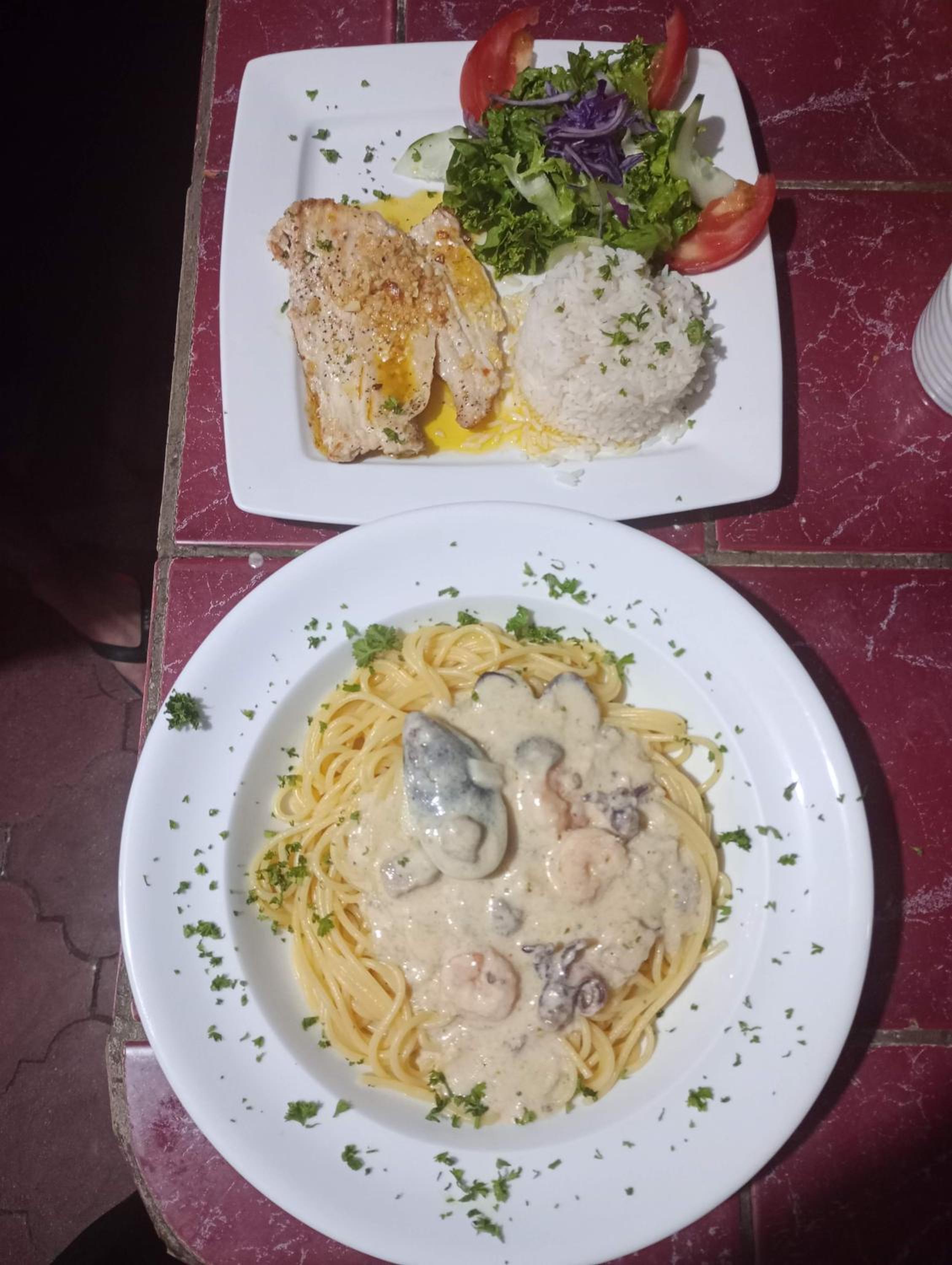 The garden and pool are very pleasant and well maintained. The waitresses are especially kind and attentive - many thanks to Evelyn for her kindness.