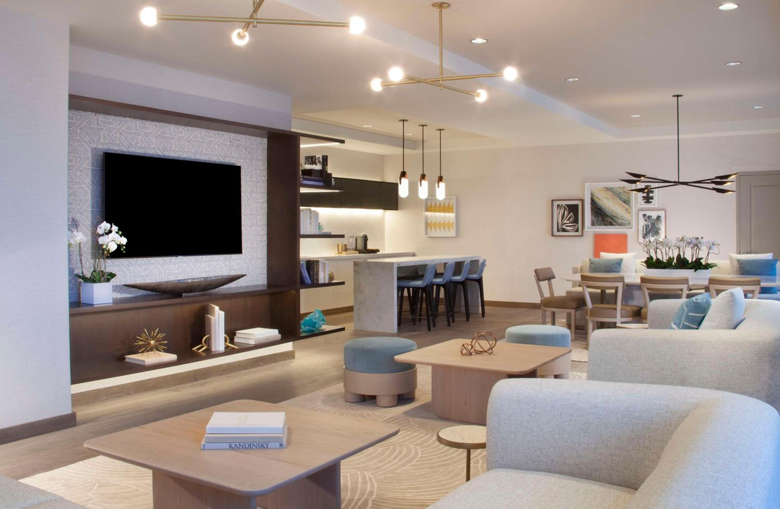 Experience comfort and style in our guestrooms and suites, each equipped with modern amenities including flat-screen TVs and private bathrooms. Suites offer extra space with a cozy seating area for relaxation.
