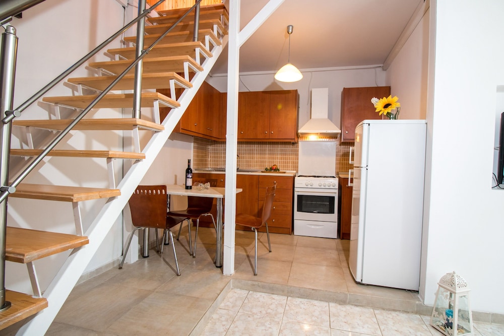 Le foto non sono rappresentative delle stato dei luoghi. Dalle foto non si capisce che vi troverete immersi in un cantiere ma di quelli pessimi, di quelli che se ci va la Usl o l'ispettorato chiudono la baracca. L'edificio è ultimato solo a piano terra, nell' intorno troverete chiodi arrugginiti, parapetti in legno pericolanti, materiali edili sparsi vicino casa, forte odore di pipì di gatto. L'appartamento sembra decente appena entrati, poi guardi bene e ti accorgi che il quadro elettrico non è in sicurezza, la finestra del bagno non si apre, la piastra per cuocere il cibo si blocca ogni 20 minuti, la persiana è rotta, il letto singolo del bambino è sotto una sporgenza che garantisce testate frequenti. Pulizia sommaria e poco approfondita. Posto non adatto a bambini piccoli. WIFI lentissimo, inutile. Tavolo snack alto con sedie basse, servirebbero sgabelli! Formiche e condizionatore problematico che non prende i comandi facilmente. Segnalo anche il ristorante/bar vicino, evitate di farvi fregare. Due caffè e due Pan cake 17 euro. Ma dove vivete??