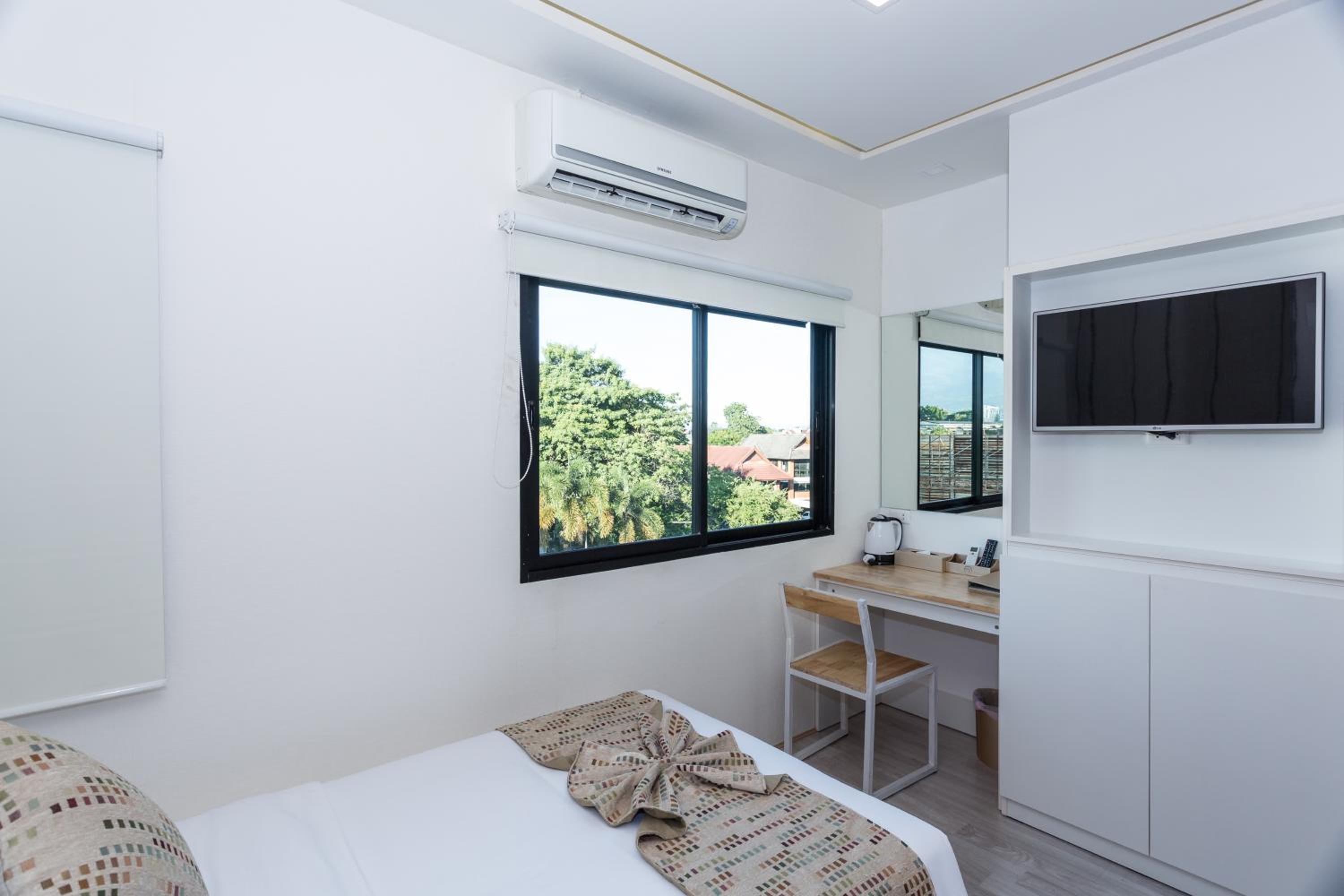 Experience the breathtaking city views from our comfortable rooms at Le Pure Hotel Chiangmai SHA. Each cozy apartment is equipped with air conditioning, a flat-screen TV, and a private bathroom for a relaxing stay.
