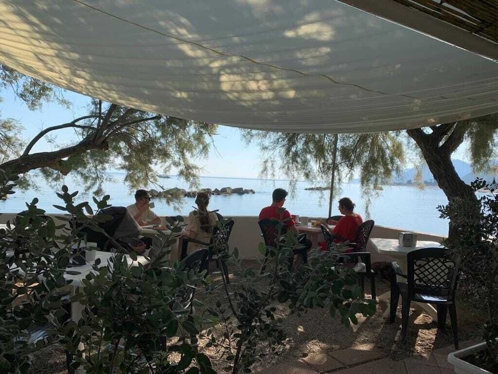 Semester lägenhet vid strande. Var närmast själv på anläggningen. Trevligt bemötande. Hyfsad säng. TV med massor med kanaler och bra Wi-fi. Var där tidigt på säsong. Enkel strand utanför rummet och väldigt privat