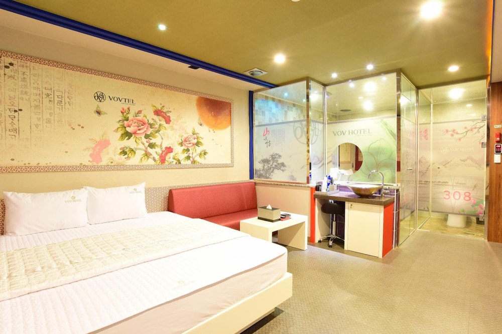 The people that worked there were the best and so nice. The rooms are big and the A.C. was great. So close to the Metro and bus stop as well. The hotel is called the V hotel not Sinsung. The hotel use to be a love motel and is not in the best shape but great for the price. The food is good and the ajummas treated us well at every meal. The manager worked hard to make us happy. Nice place and I would stay again. Just know that it is nothing fancy but they do work for you.