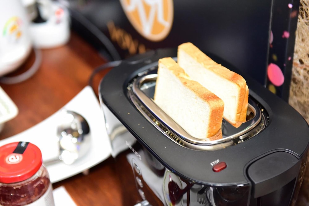 交通便利的住房,捷運出戰後步行不用3分鐘.每天早上room service早餐提供,有吐司、火腿、蛋及兩項新鮮水果。客房內有兩部桌機可供使用、冷、熱飲水機,另外冰箱還提供芒果汁及礦泉水,客房浴室及廁所分離,可惜廁所沒門,浴室無法上鎖,電燈開關過多無法一次開關。
