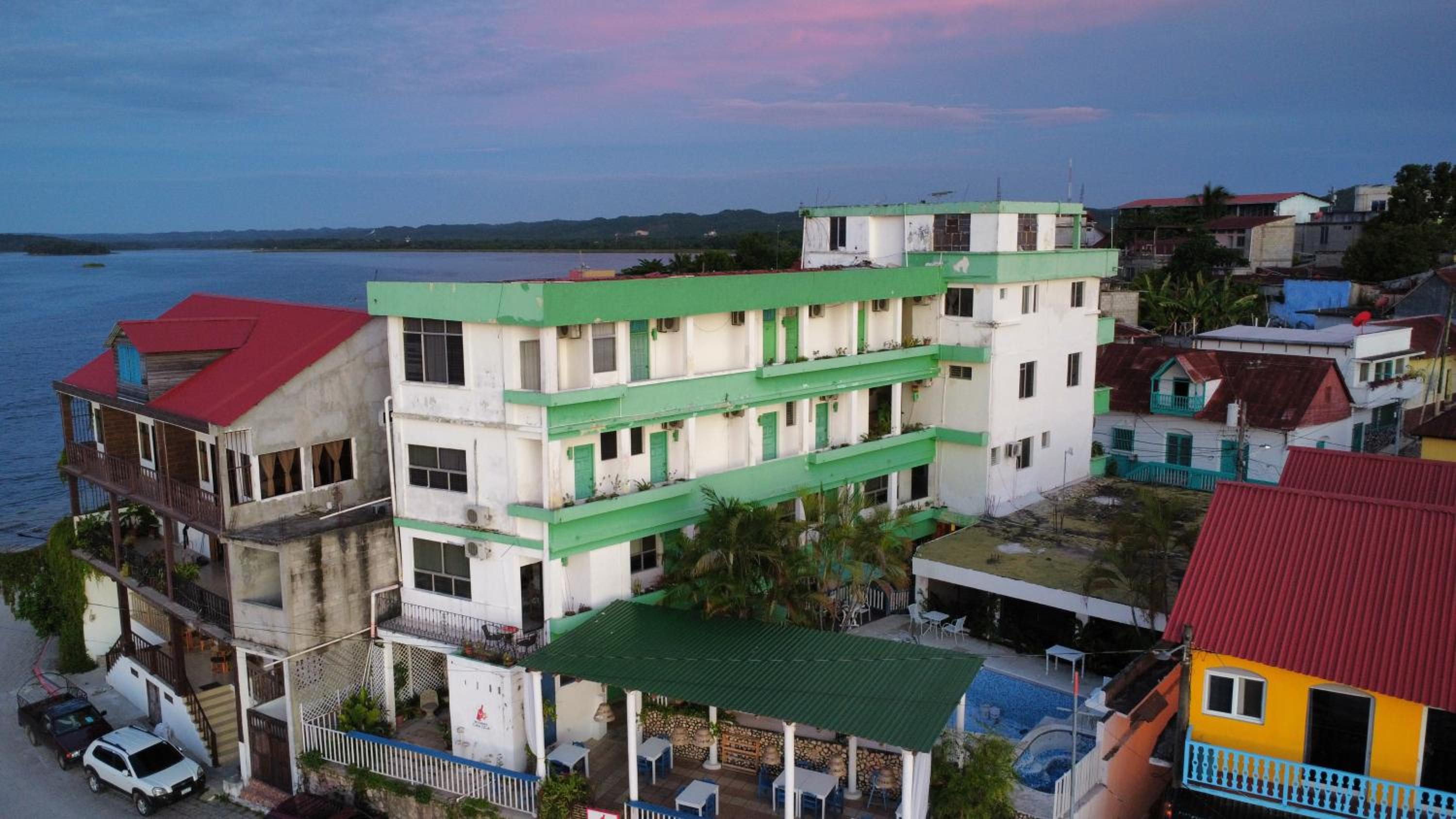 La piscina y el espacio frente al lago son geniales. Llegar al hotel es muy fácil desde el parque central de Flores. Es un lugar seguro y acogedor.
