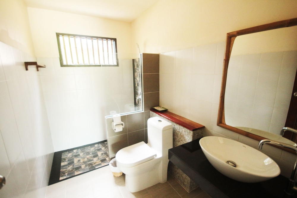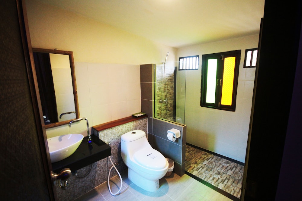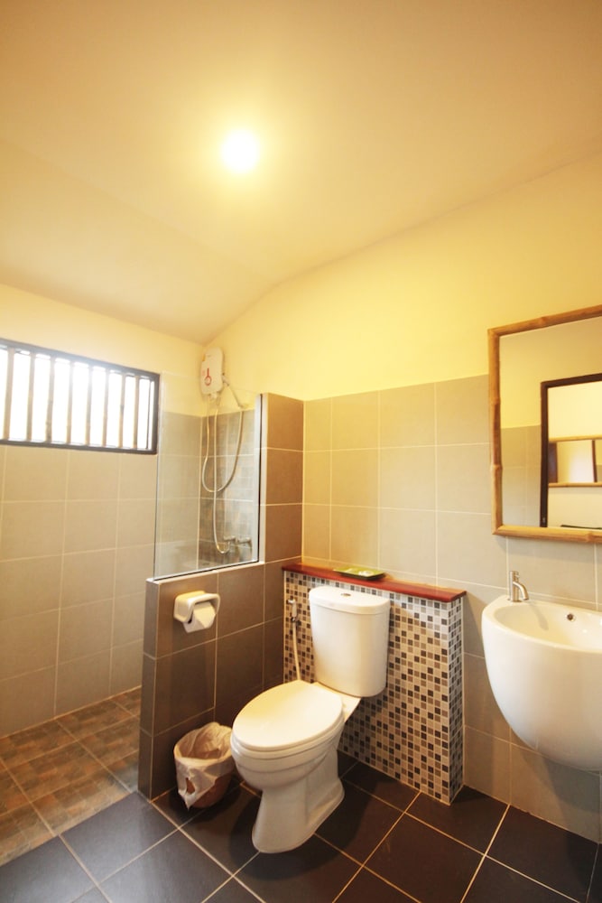 Room - cute bungalow type rooms with basic essentials. AC worked well and WiFi in rooms with a lovely balcony to relax on. On a steep hill but nothing too far.