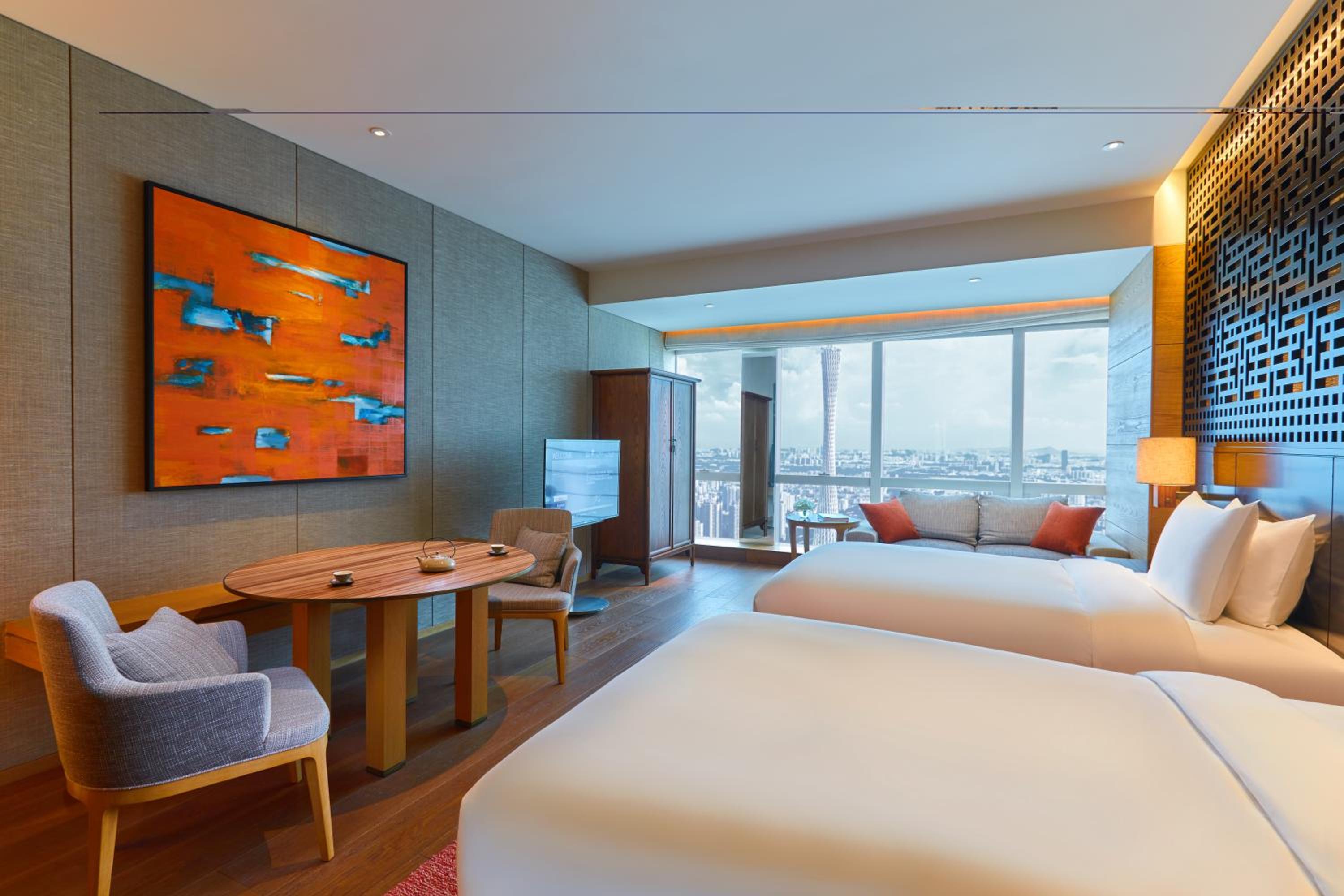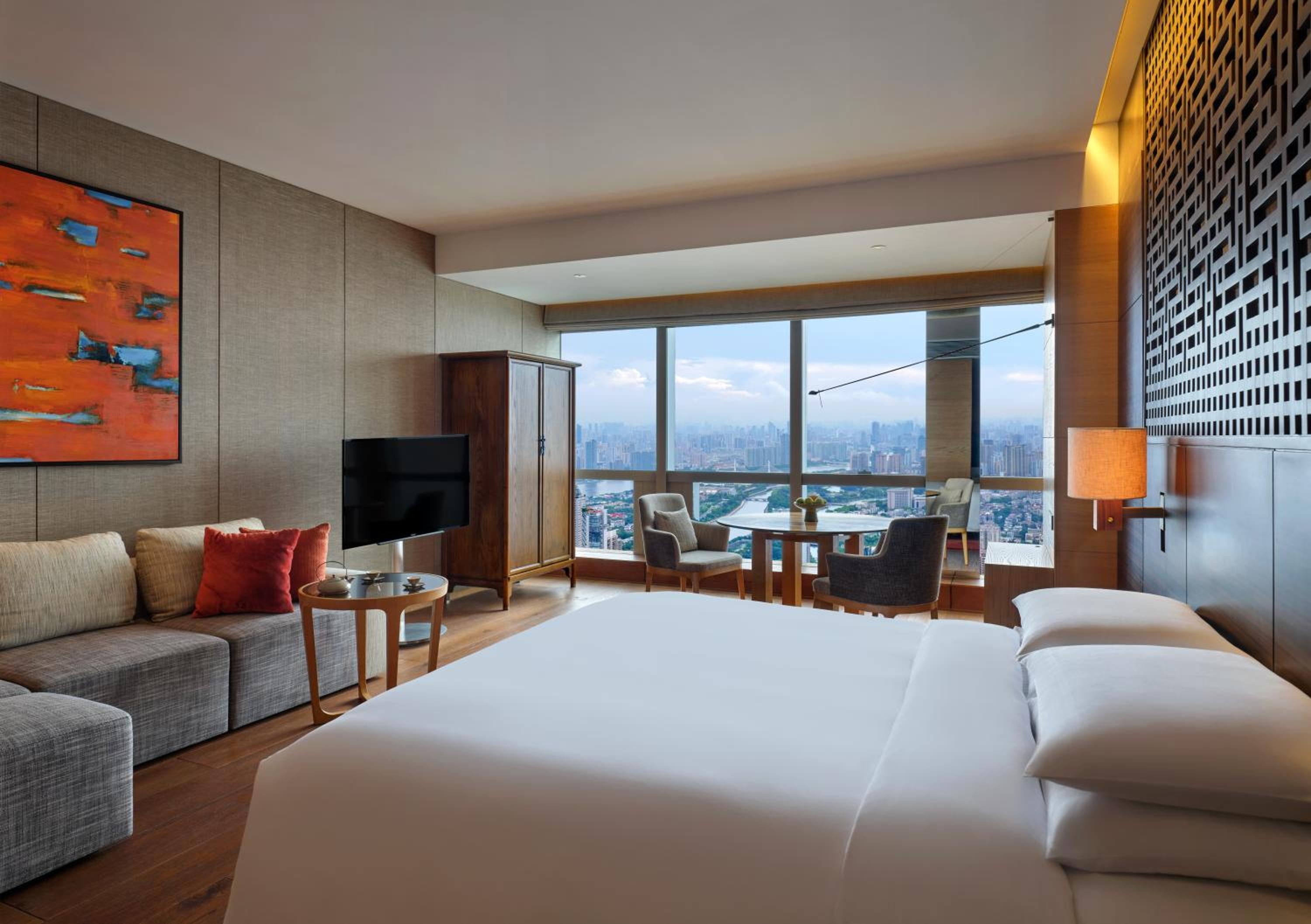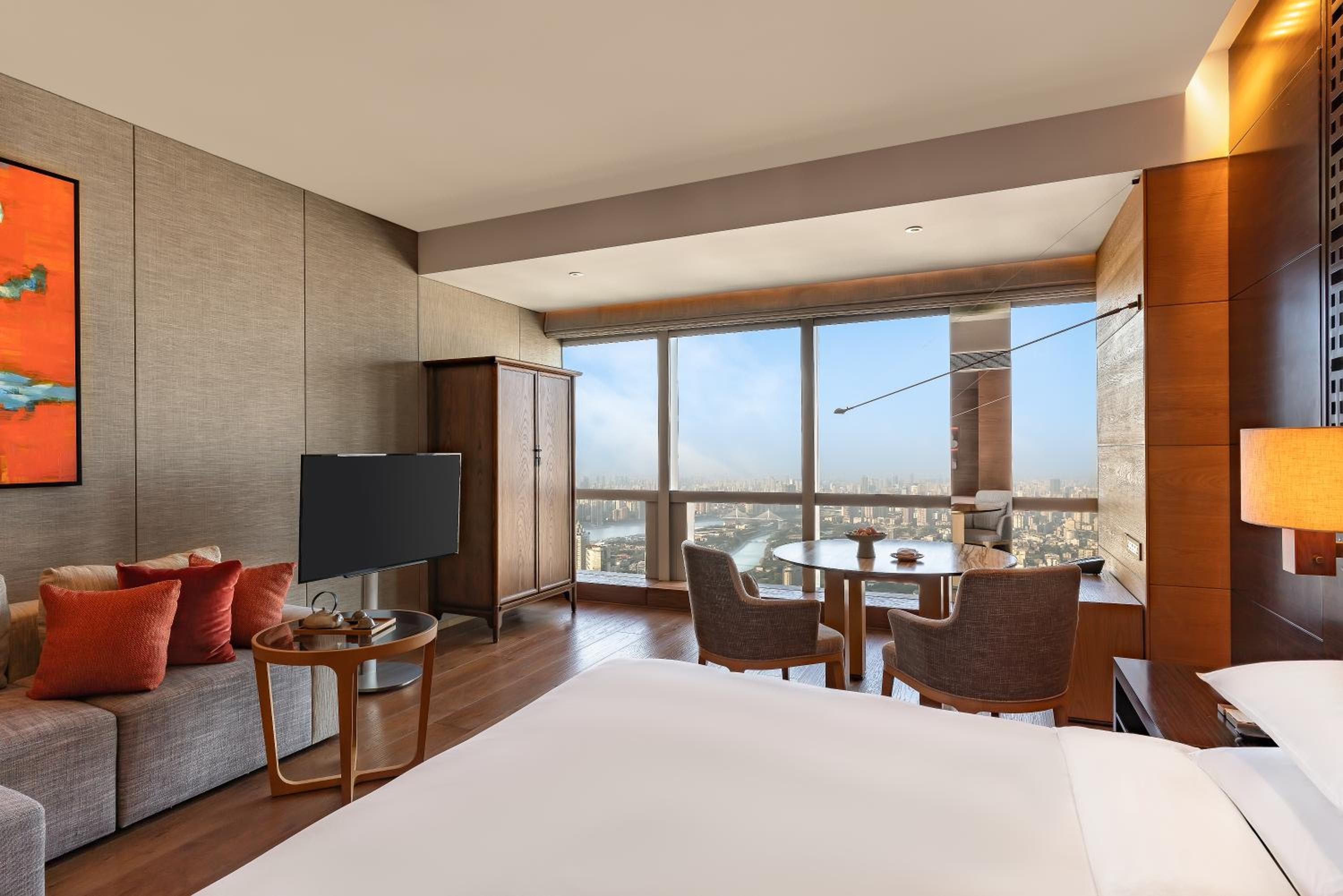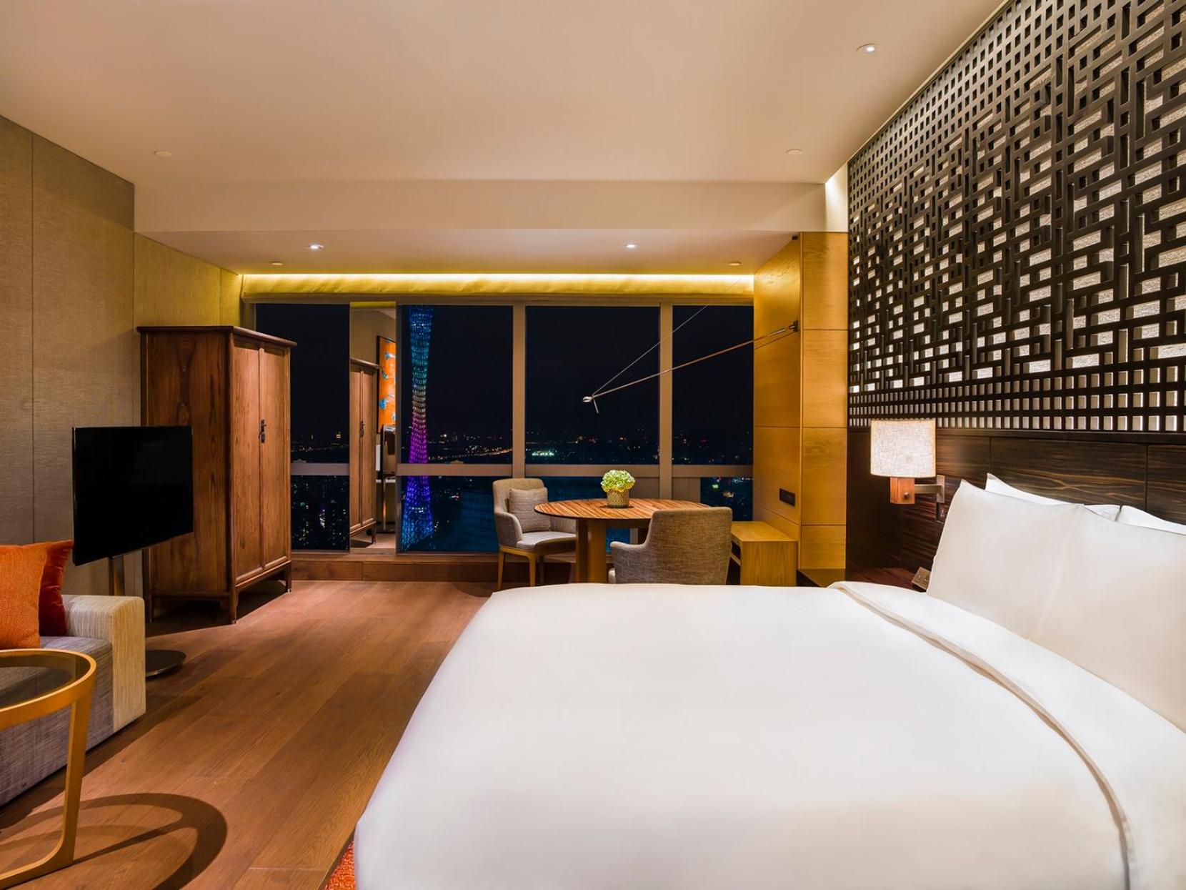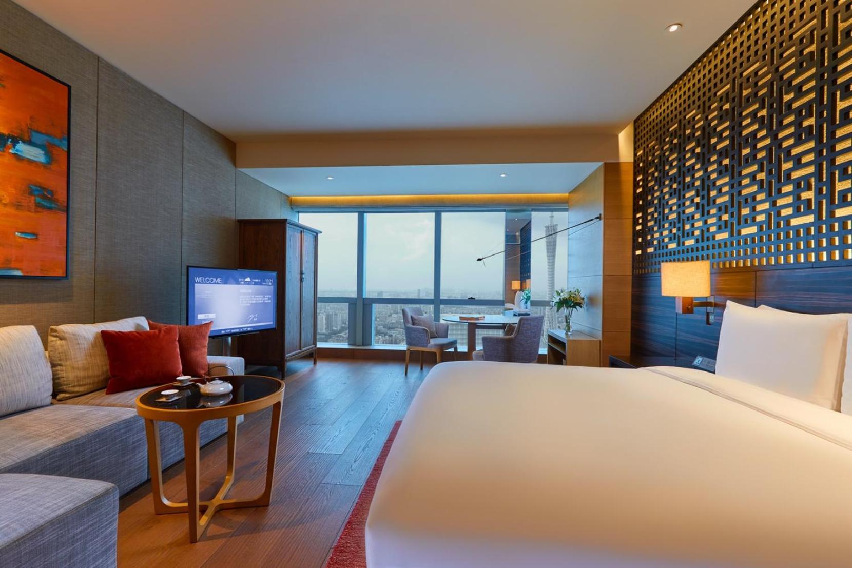 The hotel is situated right in the heart of the city, very close to underground Metro, shopping, F&B and amenities. The atmosphere of the hotel is simple yet luxury and made me felt at home. Room size were spacious, very clean and well equipped with a separate closet, sofa set, working / dining desk, international adapters, automatic curtain / sheers and a good view of the city. Noise level and sound proofing in the room is very good. Service is very good with attentive and responsive staff at each service level. Amenities were also very good with well equipped gym, spa and infinity pool facing the Canton tower. Will definitely come back one day.