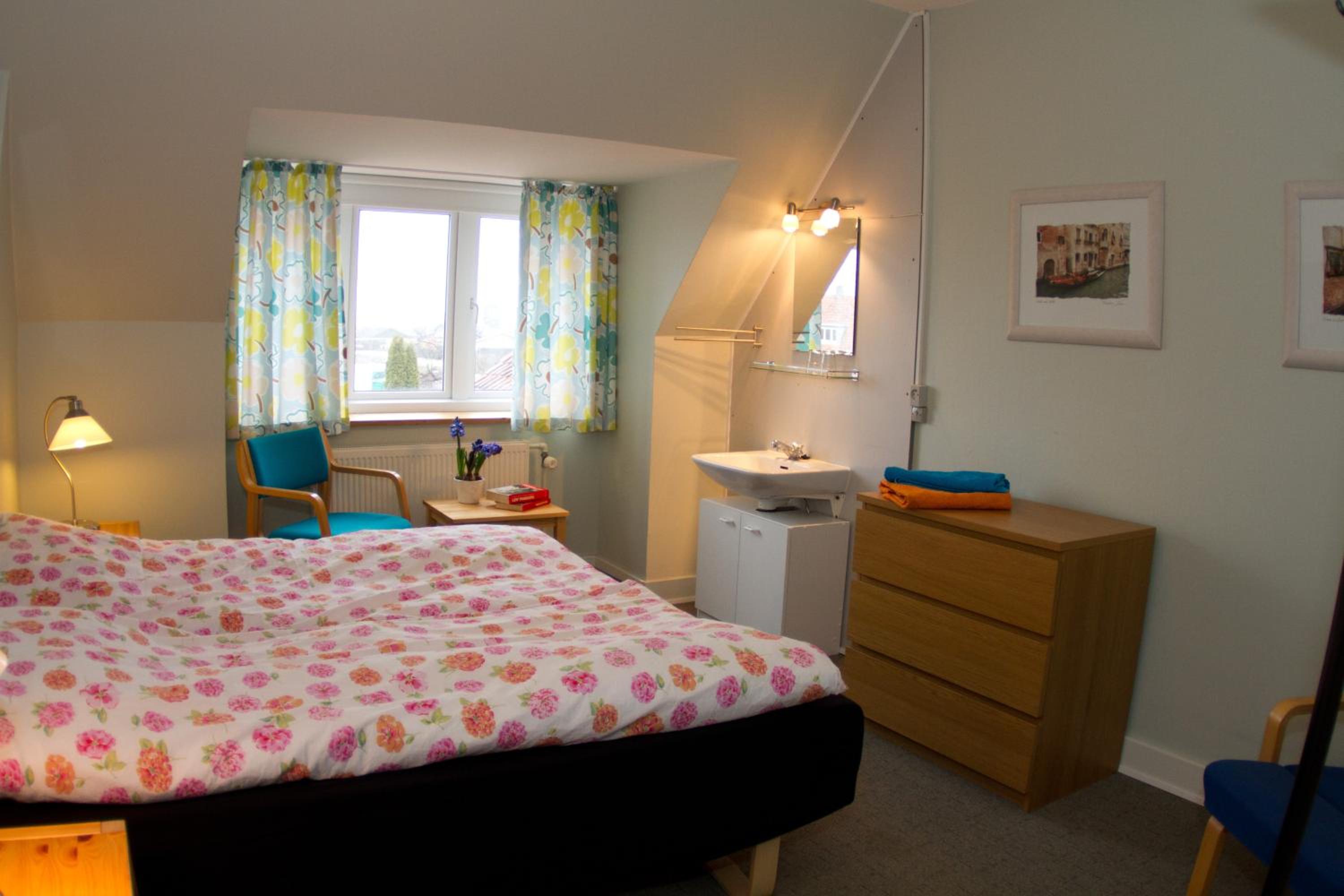 Sengetøj og håndklæder var lidt for retro til min smag. Mønstrede og i alle farver. Svært at bedømme om det var rent. 🫣😳