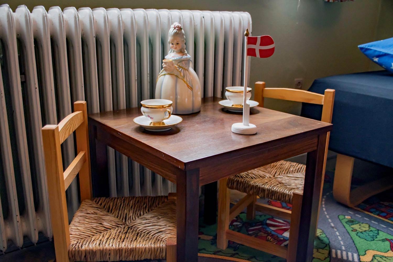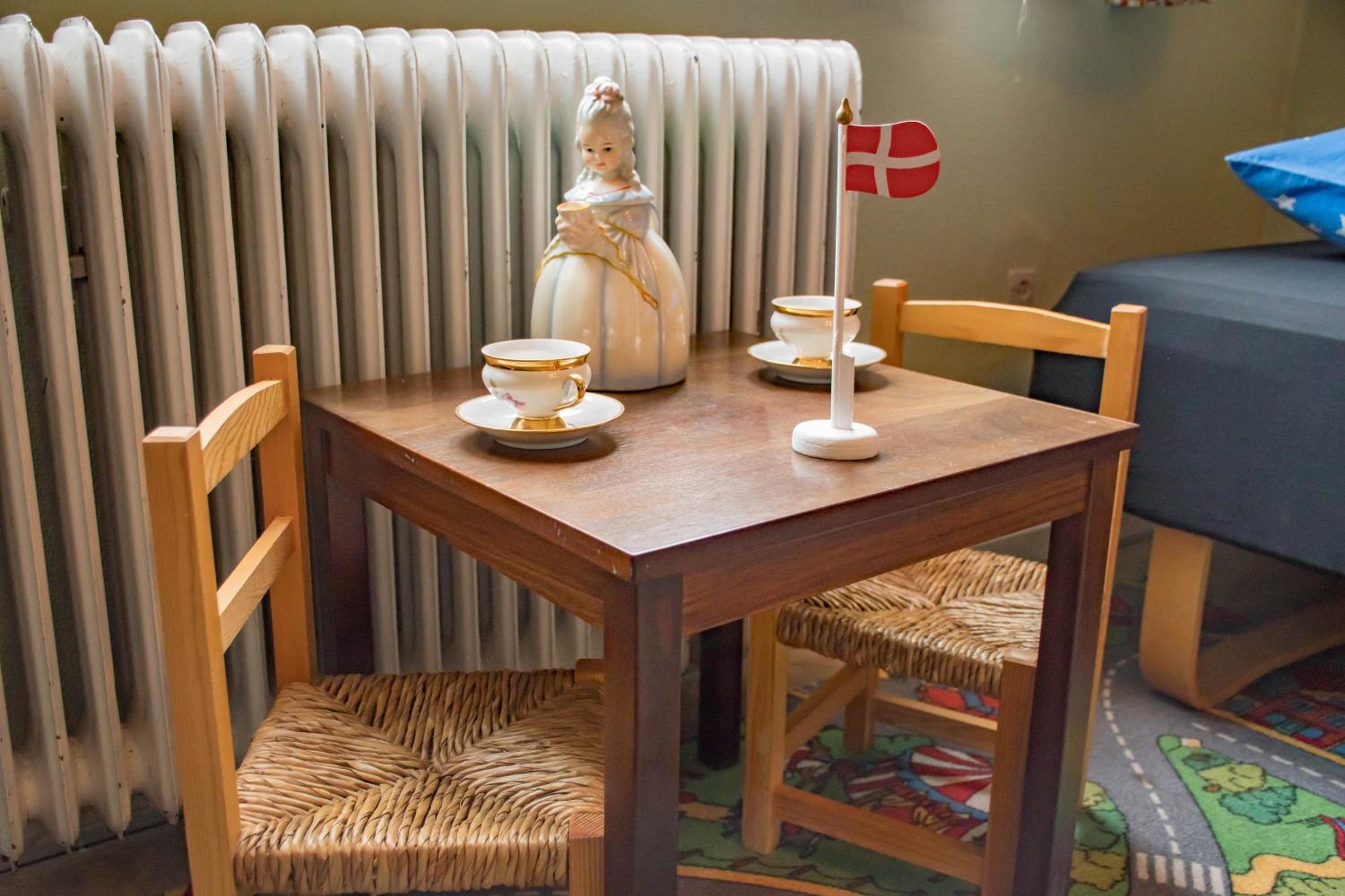 Venlig betjening og hyggelige gamle møbler.