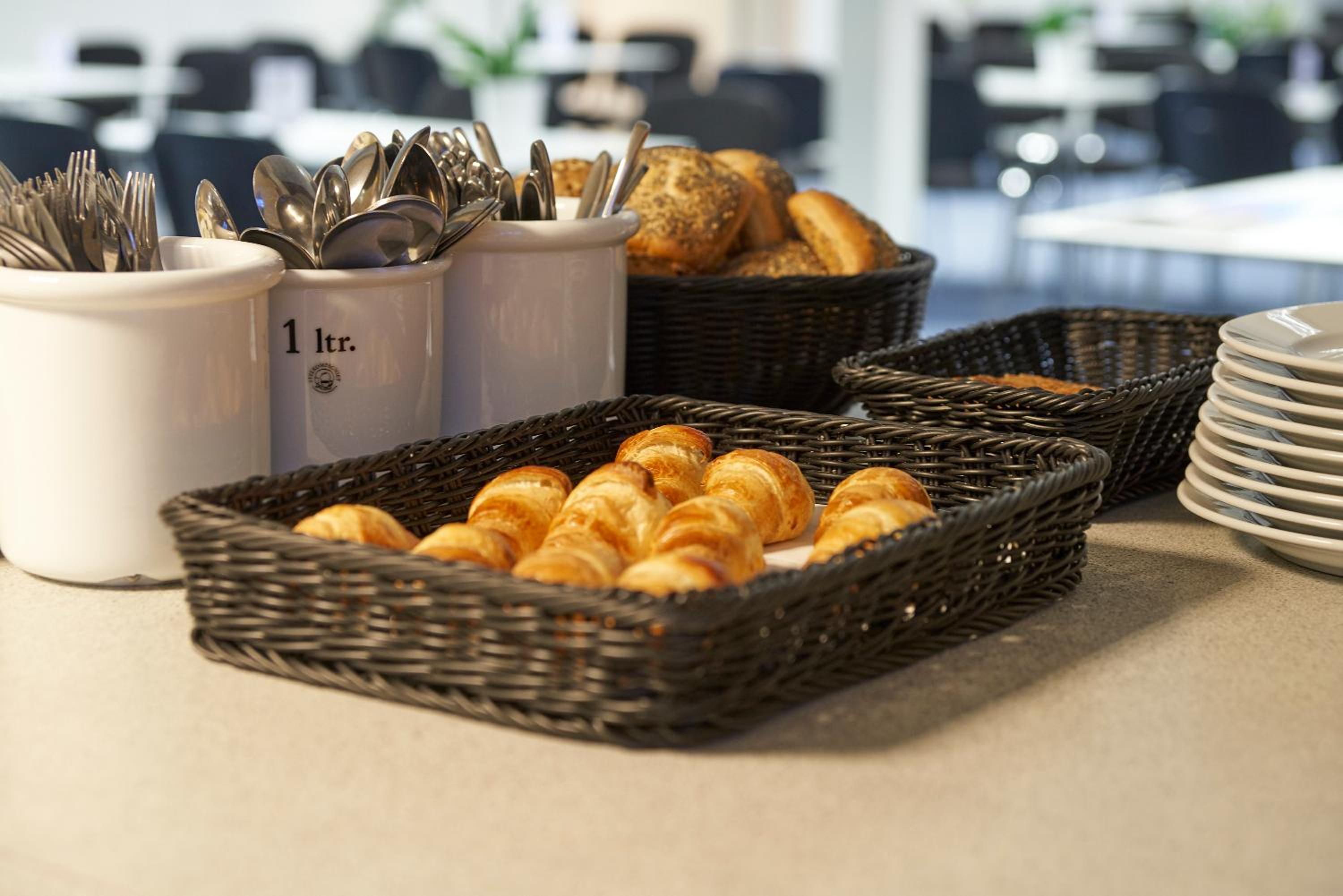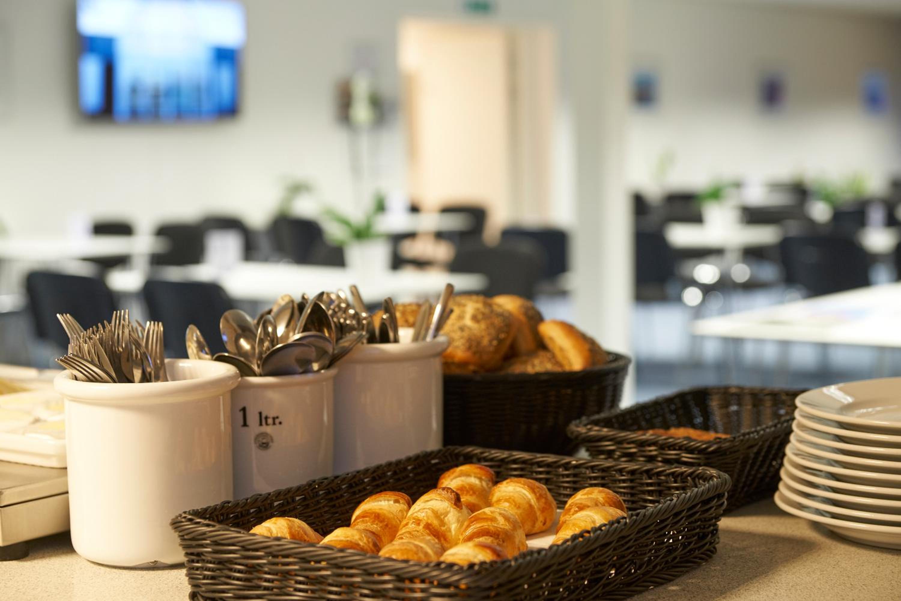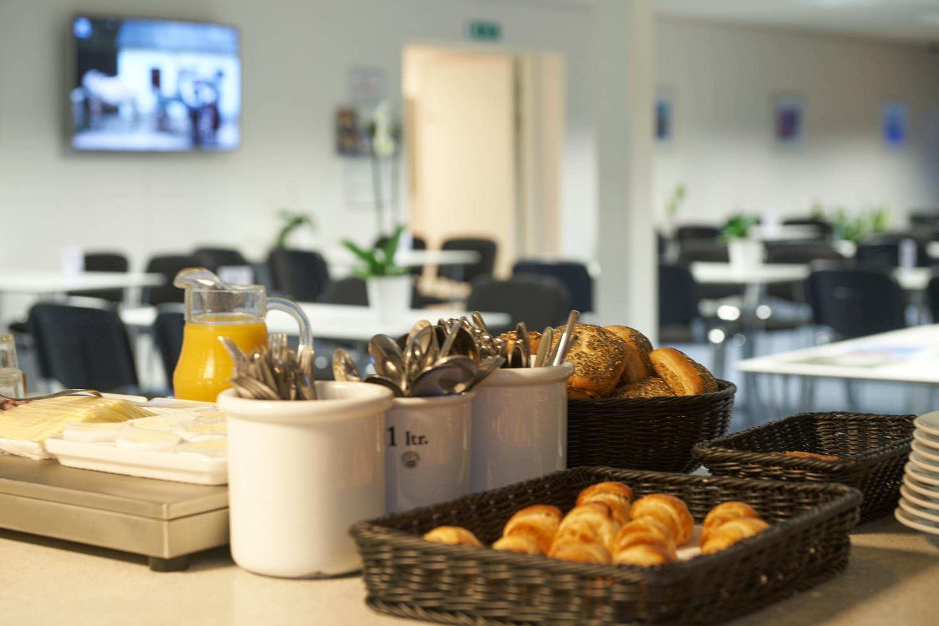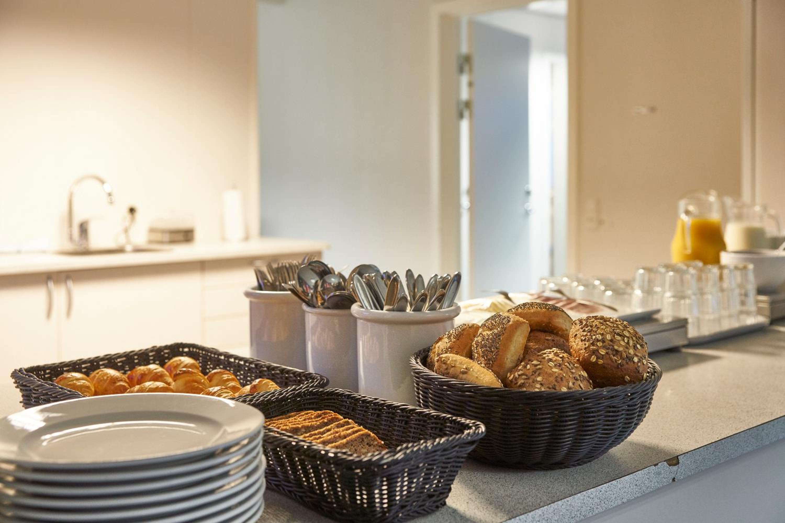 Nemt at komme til messe området. Mulighed for morgenmad, det er microovn og køleskab til rådighed.