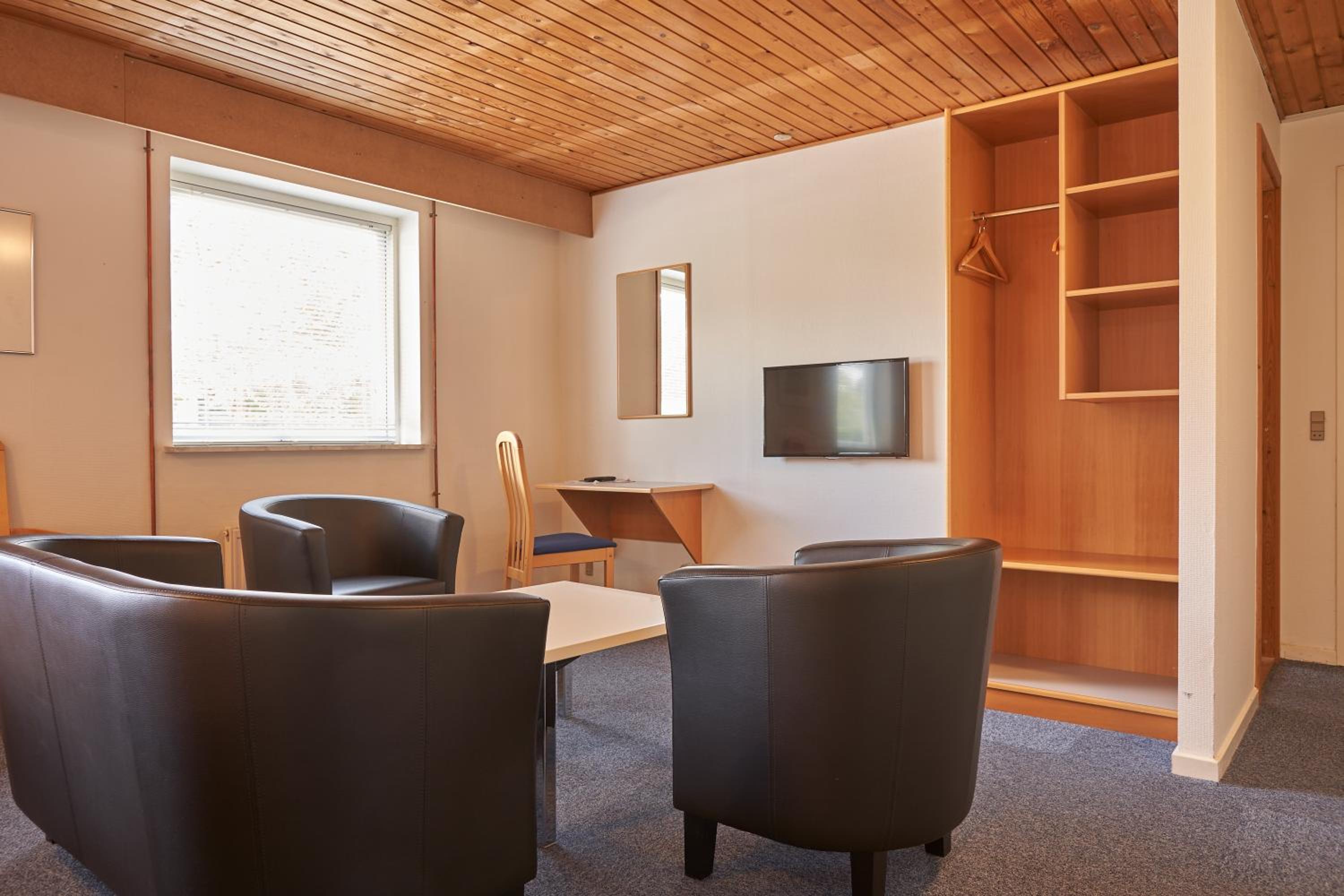 Great Amenities: Take advantage of our free WiFi access, meeting facilities, and the convenience of free parking during your visit. With Billund Airport located just 46 km away, your travel plans are made easy.