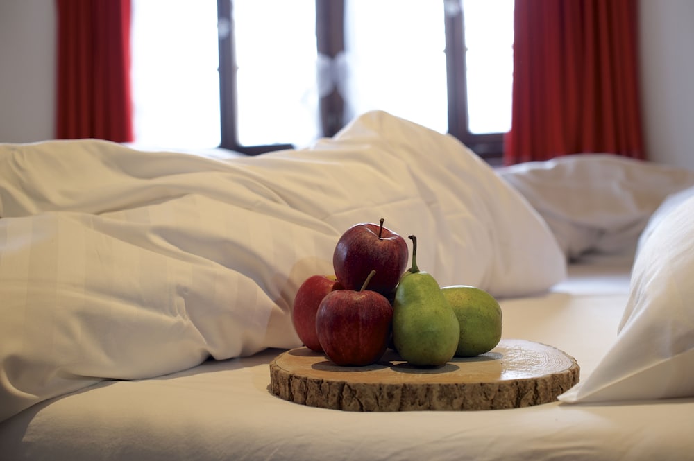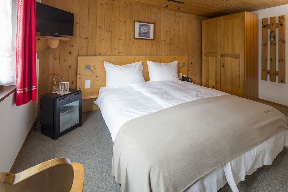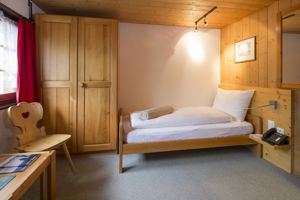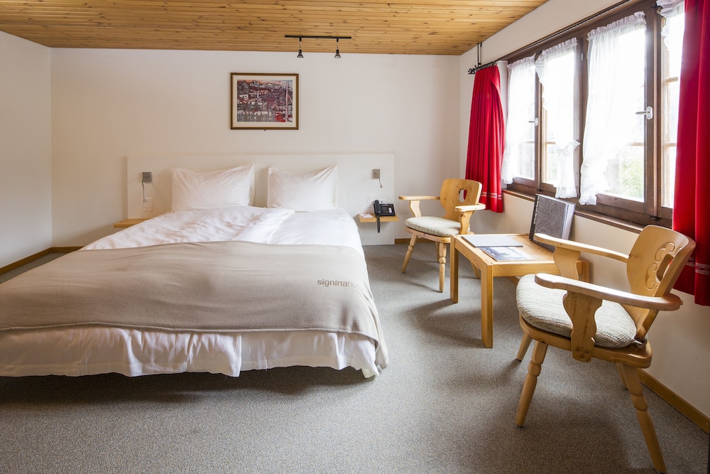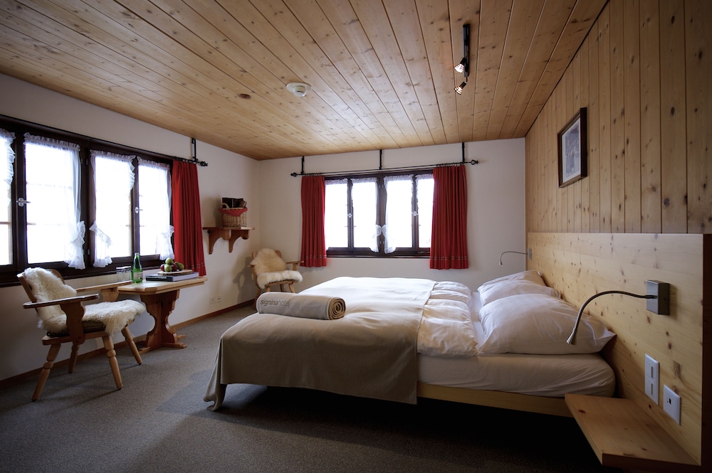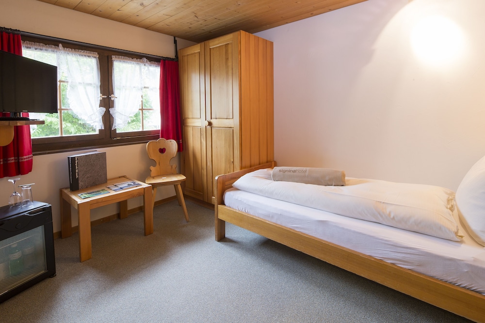 Einfache und günstige Zimmer im Bündnerhaus , aber mit sehr gutem Frühstücksbuffet und herrlichem Wellness Bereich im Signina Hotel inklusive.