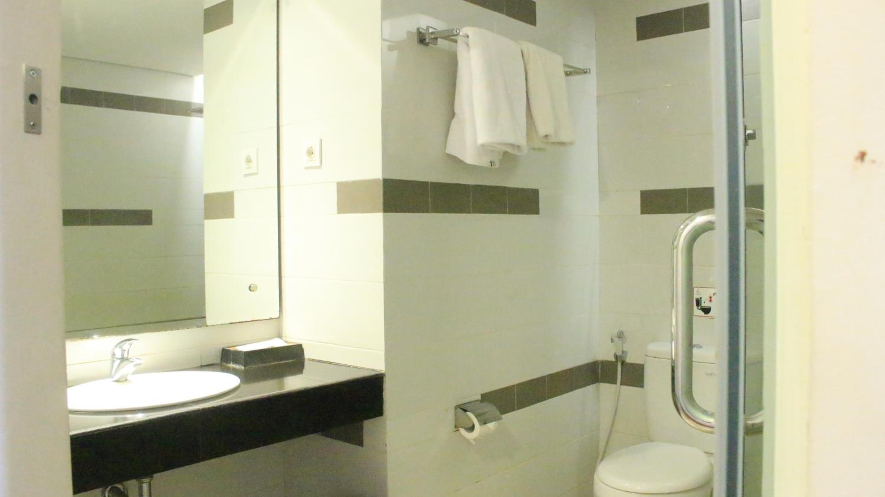 Shower. The bath only has head-shower, no hand-shower forcing the guest to wash hair without a choice! A shower cap is given but, I personally prefer to use a hand-shower. Hotel has some repair or renovation on at the front.