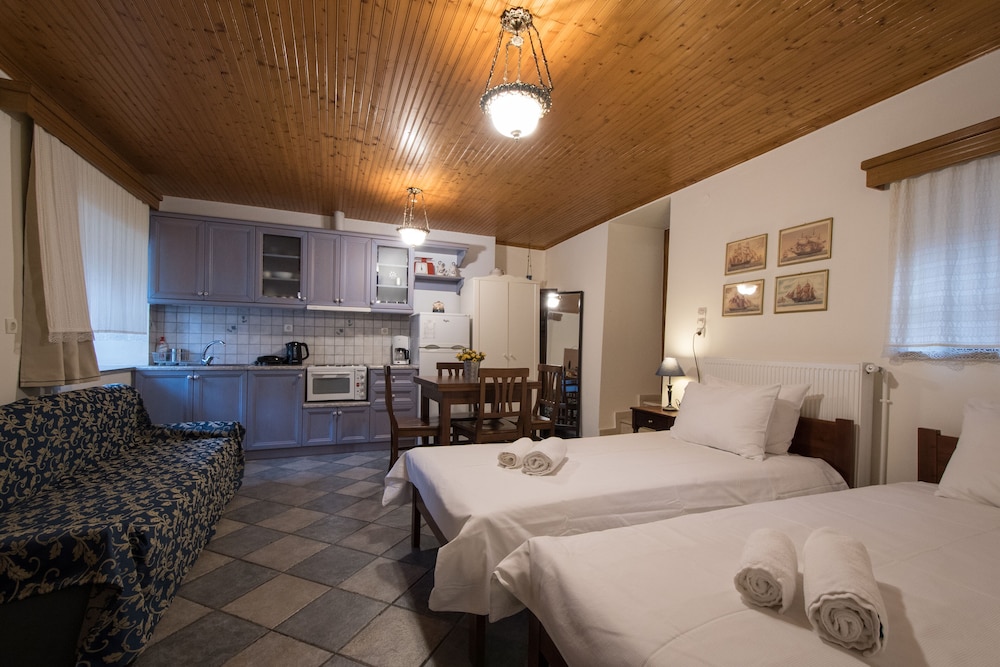 We travelled as a family of 4. The appartment was very good and comfortable. Especially the breakfast was extended and very delicious. The owners Vasilis and Dimos were very friendly and helpful in providing detailed hiking tips. We really can recommend this location.