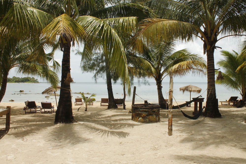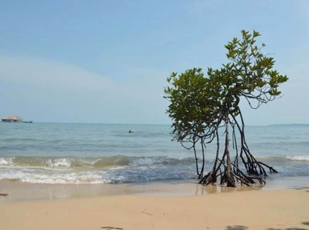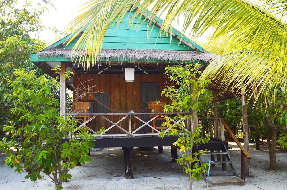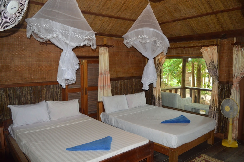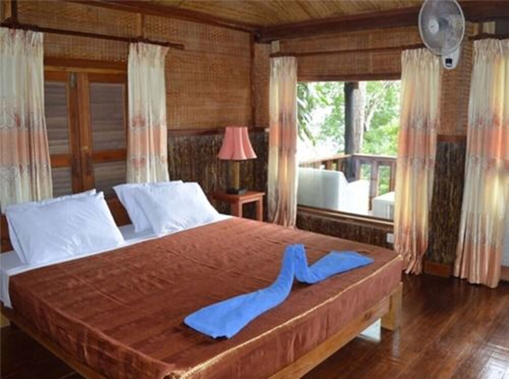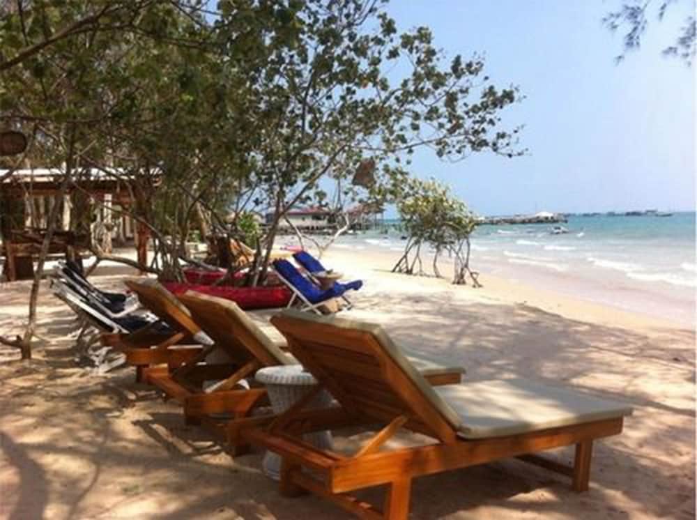 Nice and basic bungalows with fan, sometimes a bit hot to sleep. Beach ok for sun bathing, but swimming challenging because of the rocks. Nice restaurant and good food. Canoeing and pool table ++ Just be careful with small flying ants!