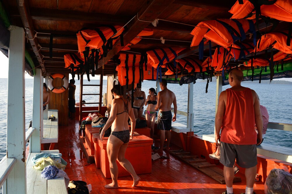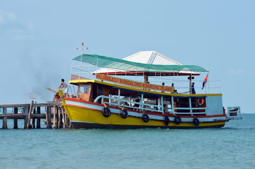 Took Palm beach ferry back to Sihanoukville and was met by man in cafe in dock who was only one offering a taxi. Ended up a crazy journey in a tuktuk to meet up with taxi with several other occupants, some sitting hanging out the back of the hatchback and only just reached airport in time. Be warned.