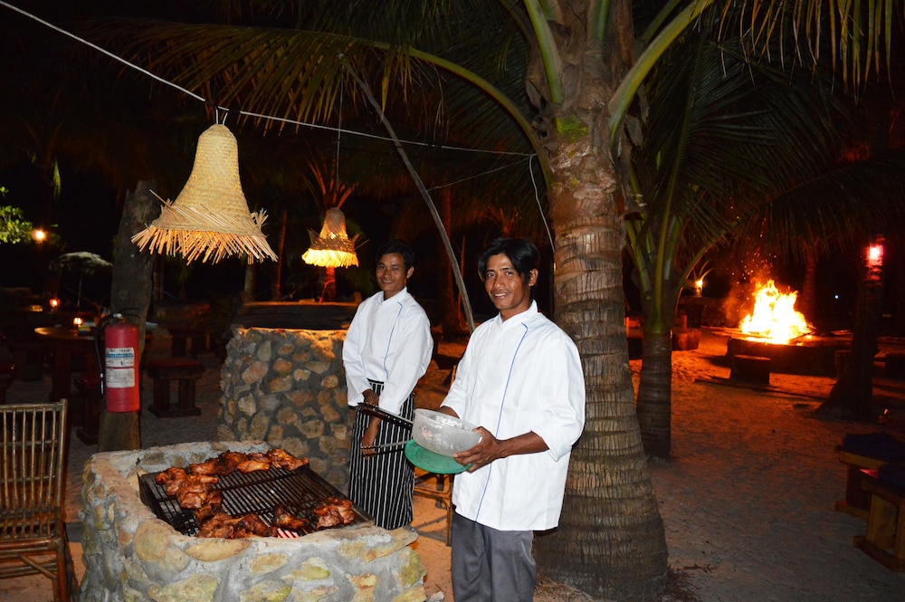 The staff were amazing, you can tell they take pride in their place and go out of their way to help you out. The food was okay, beach kept clean. No AC, big deal though, fans kept us cool enough. Just don’t plug your phone in at night, will drain your battery. Charge after 8 am also can charge in restaurant. Plenty of games to play, board cakes, darts, pool, kayaks, volleyball, badminton..... local dogs and cat are friendly and cute.... price is awesome... felt like part of the family and we would go again in a heartbeat!