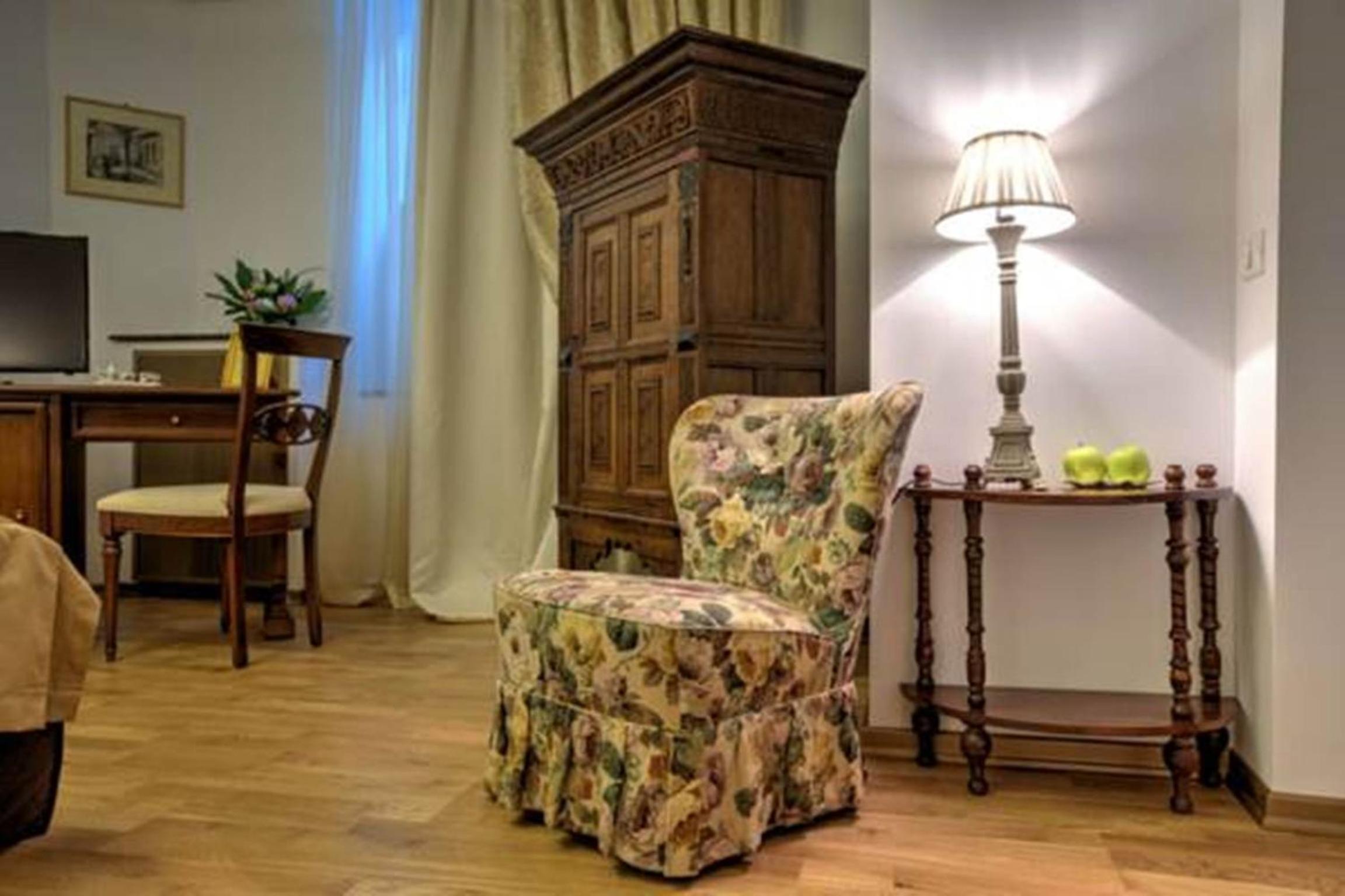 The hotel is built in an ancient building close to the downtown. It is very well set-up, atmosphere is elegant and antique, but everything is clean and perfectly maintained and useful. Bathrooms are modern and comfortable. Our bedroom had A/C, minibar and TV.