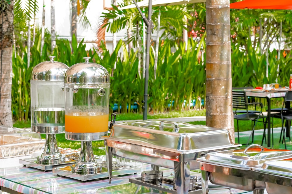 There isn't any food close by. We walked 10+ minute to find basics. No taxis or tuk tuks readily available. ( as expected from airport hotel)